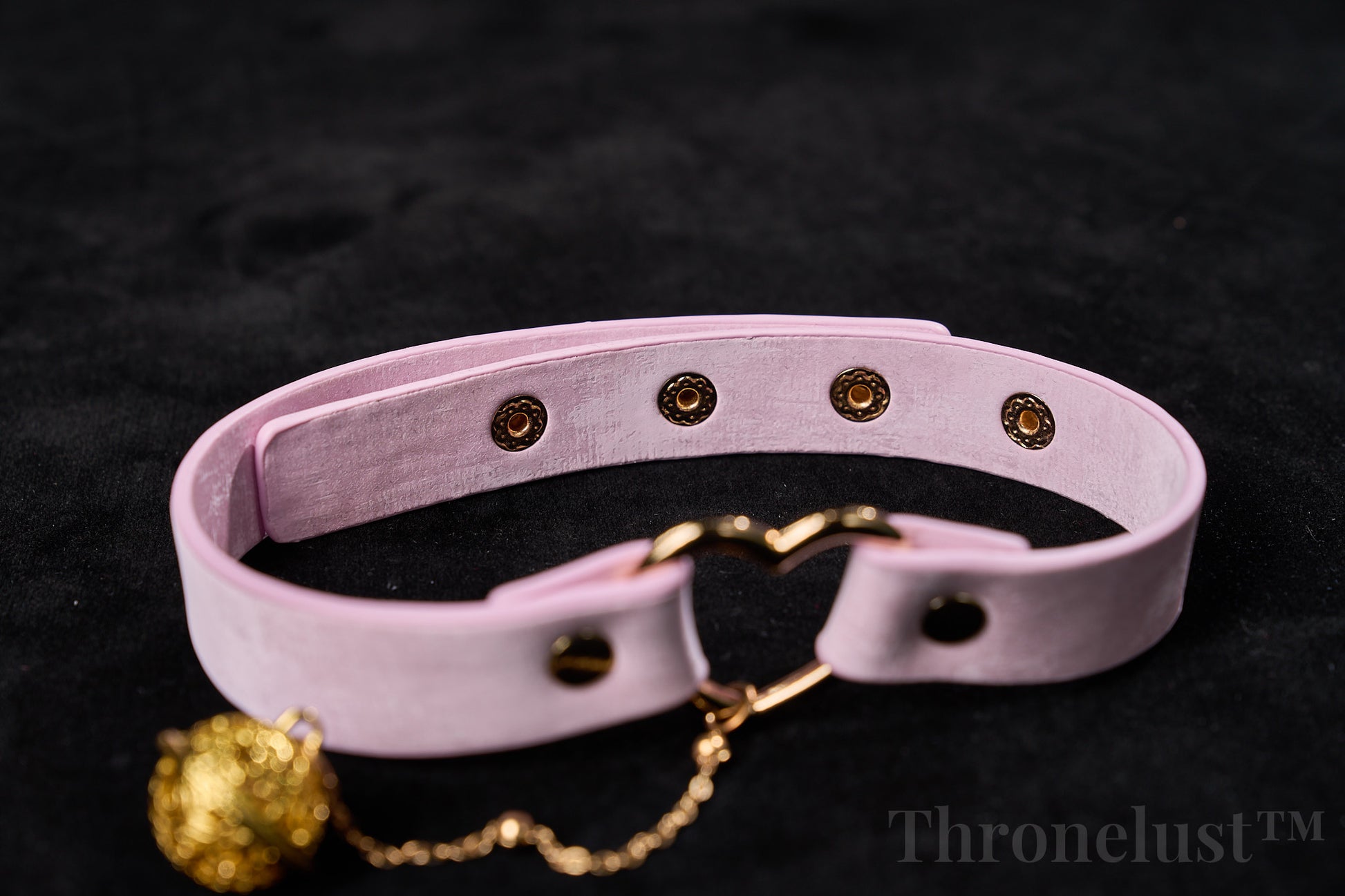 Heart-Ring PU Leather Collar with Chain Leash – Pink BDSM Restraint Accessory