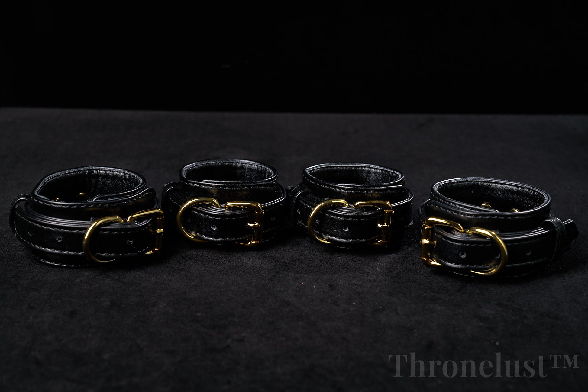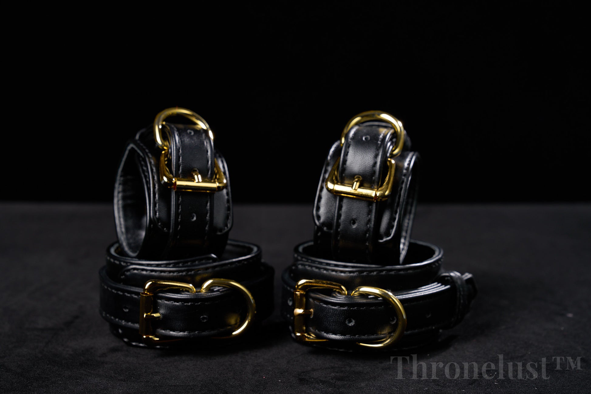 Padded PU Leather Cuffs — Wrist or Ankle, Gold-Tone Hardware, Adjustable D-Rings BLACK Padded PU Leather Cuffs — Wrist or Ankle, Gold-Tone Hardware, Adjustable D-Rings BLACK