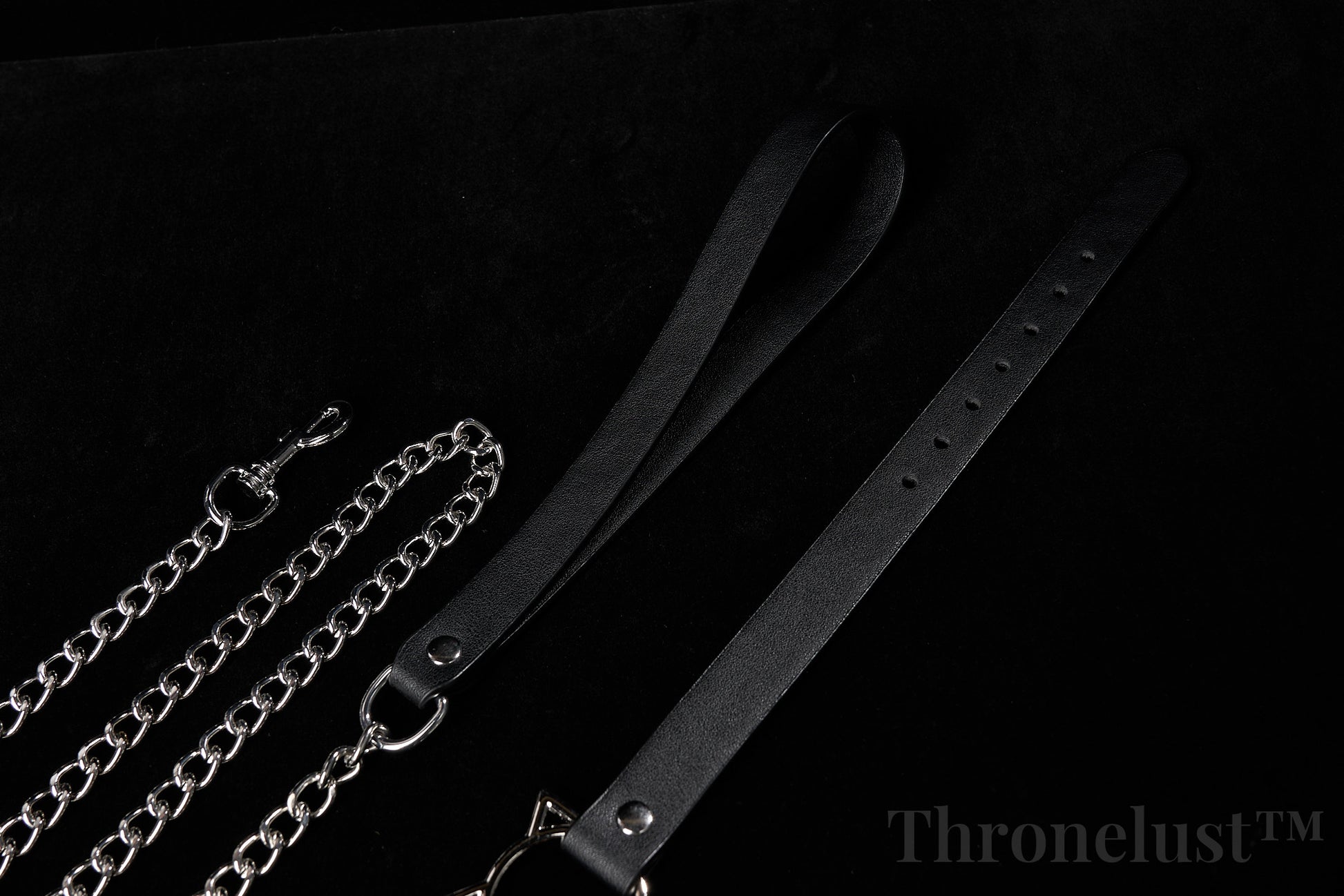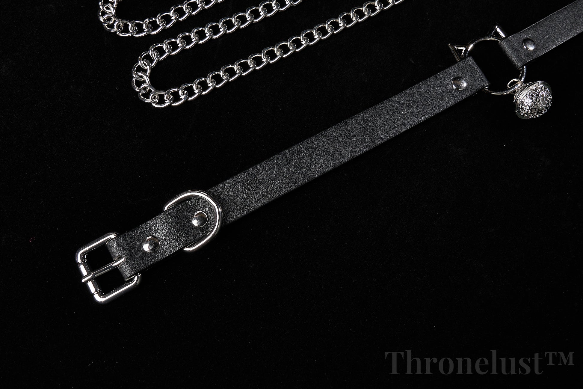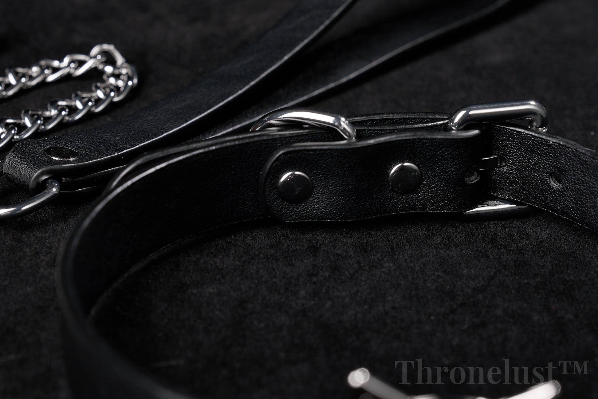 PU Leather Collar with Metal Chain Leash – Adjustable BDSM Restraint | Thronelust™