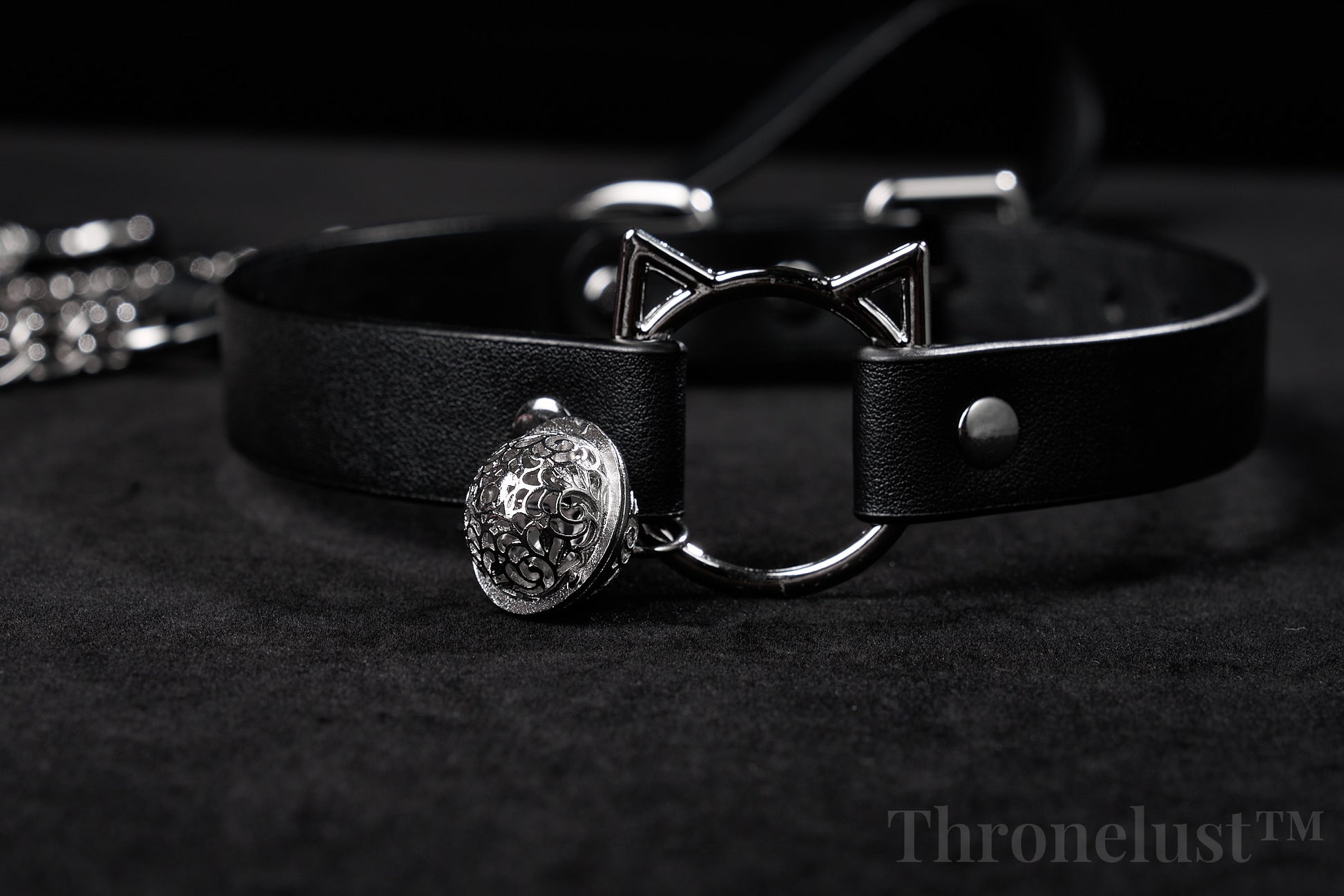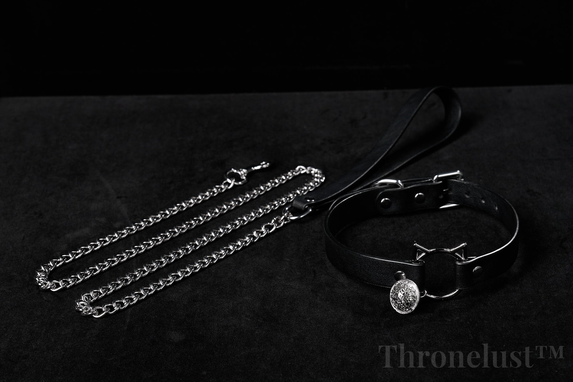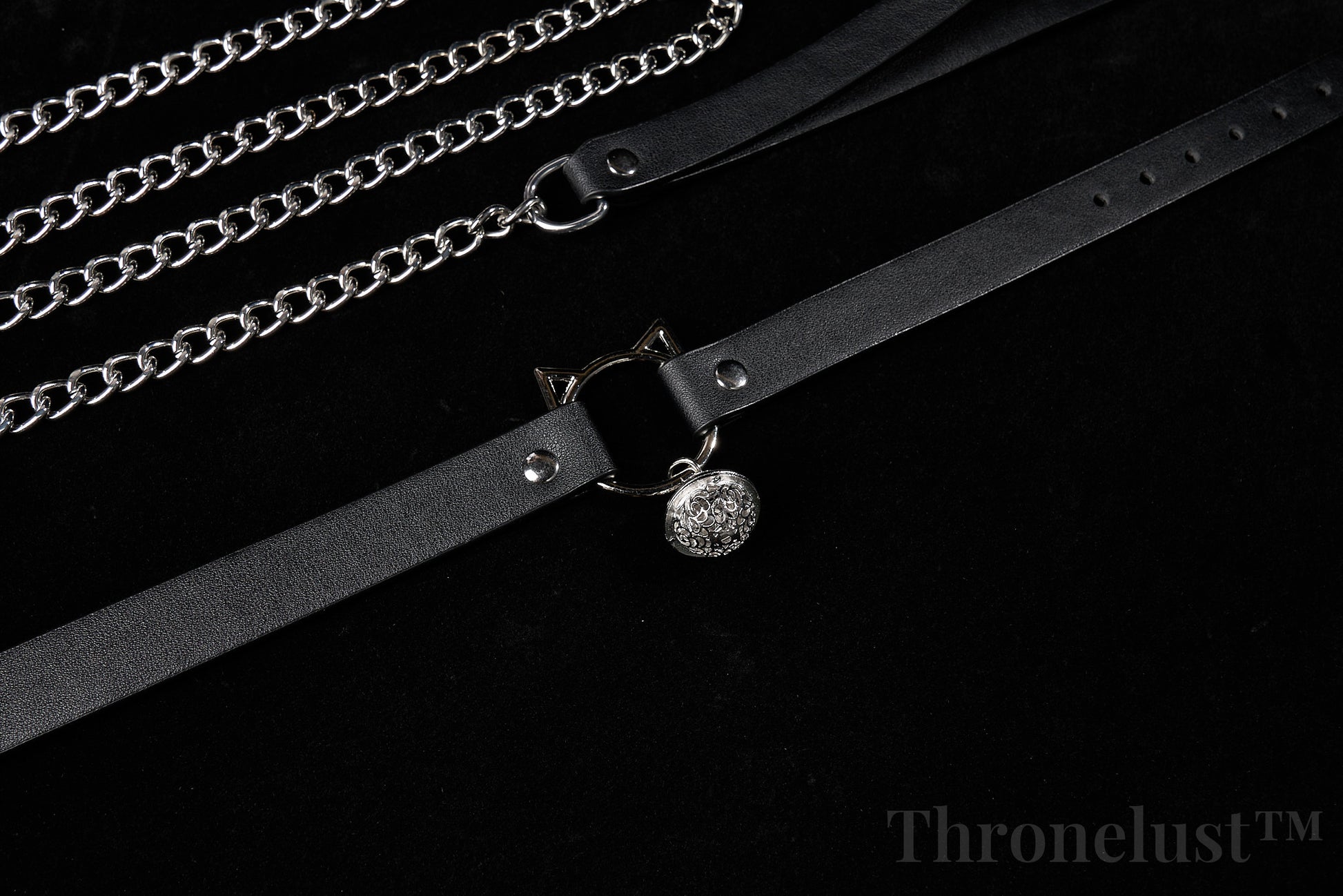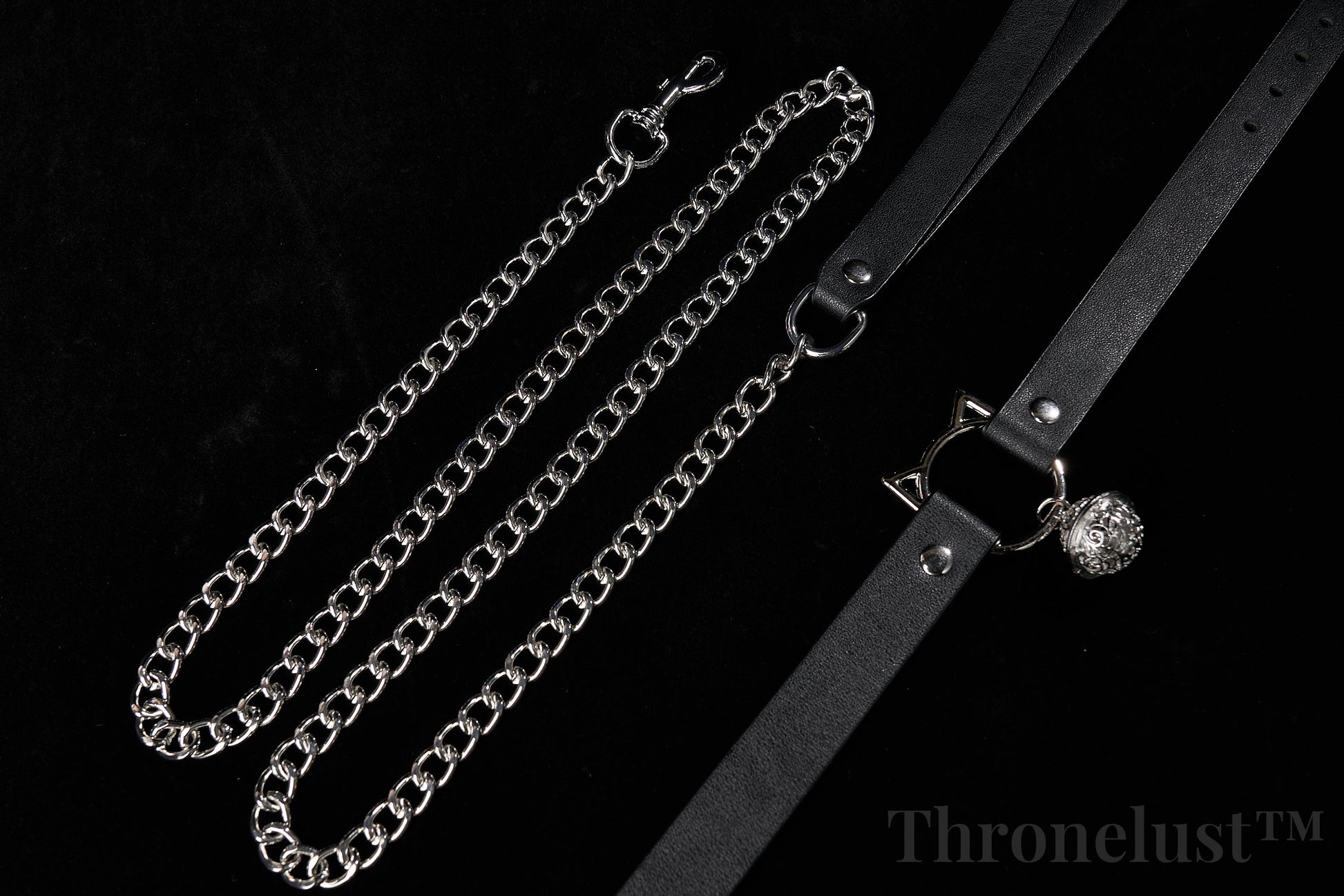 PU Leather Collar with Metal Chain Leash – Adjustable BDSM Restraint | Thronelust™
