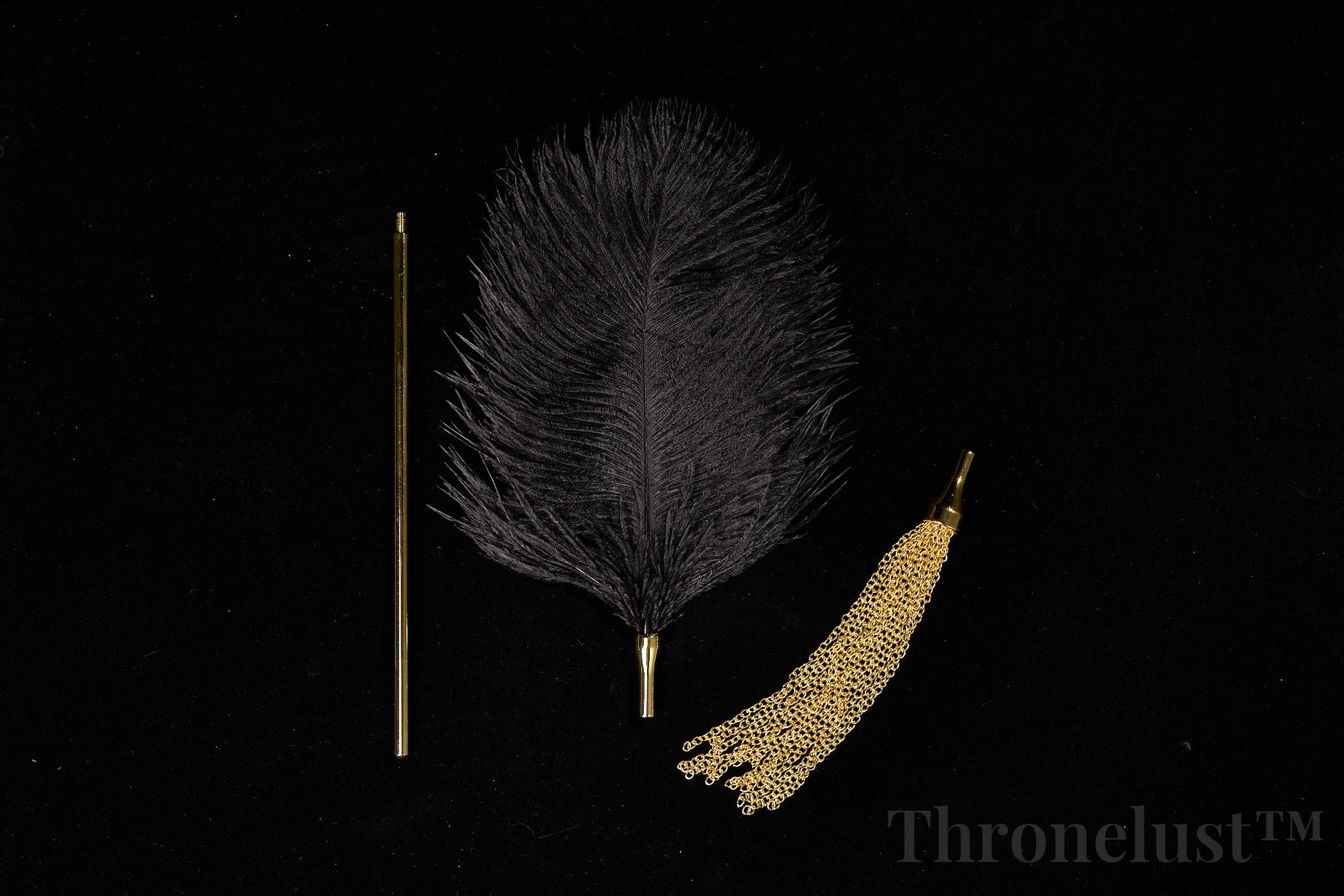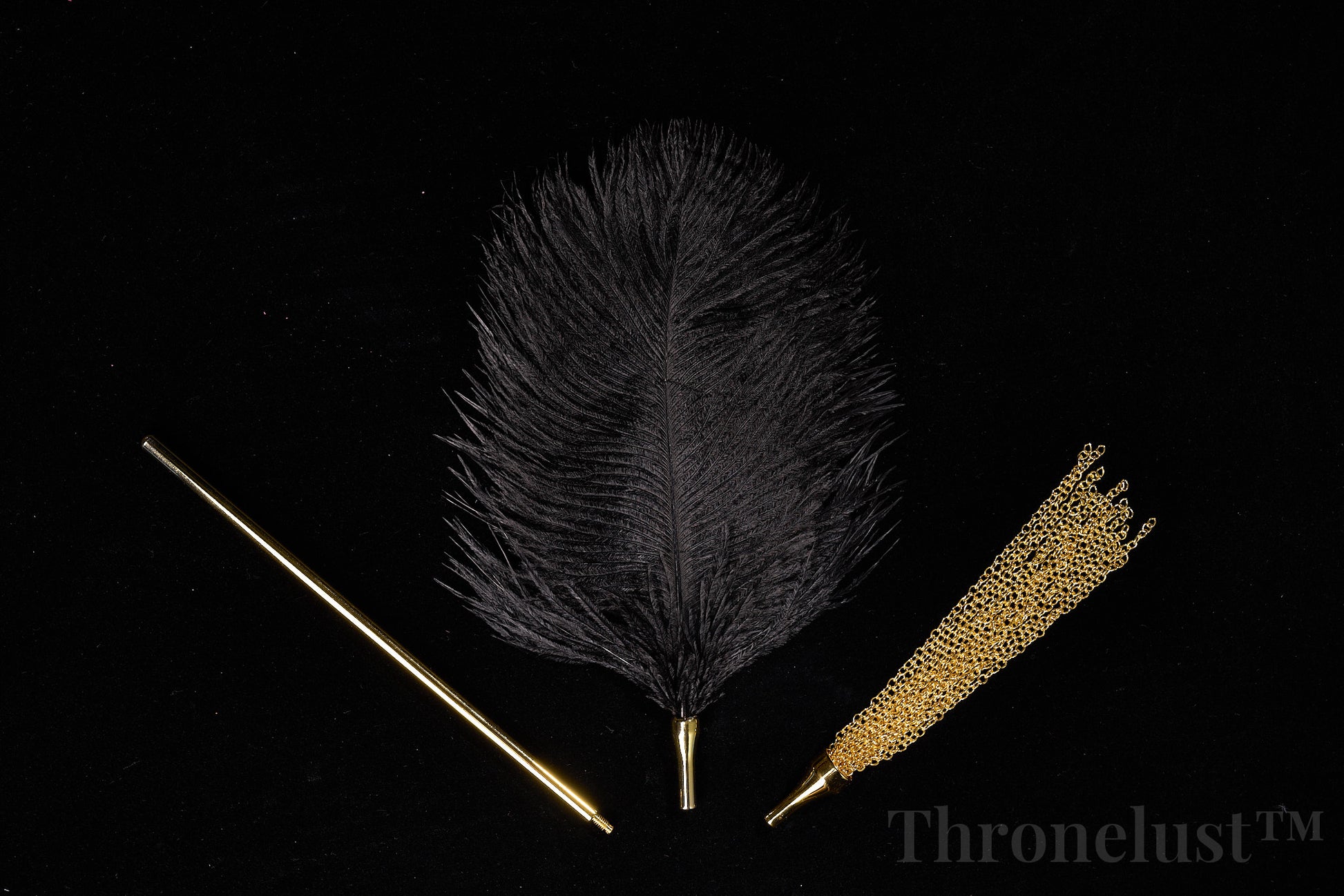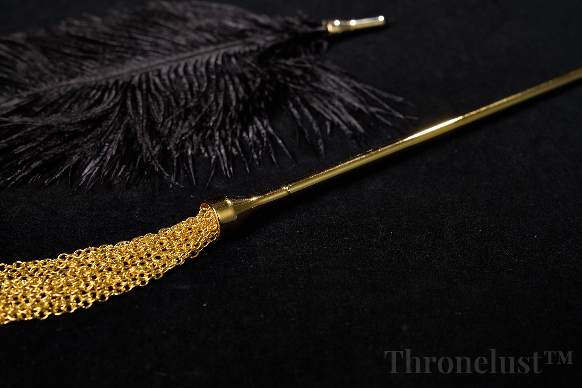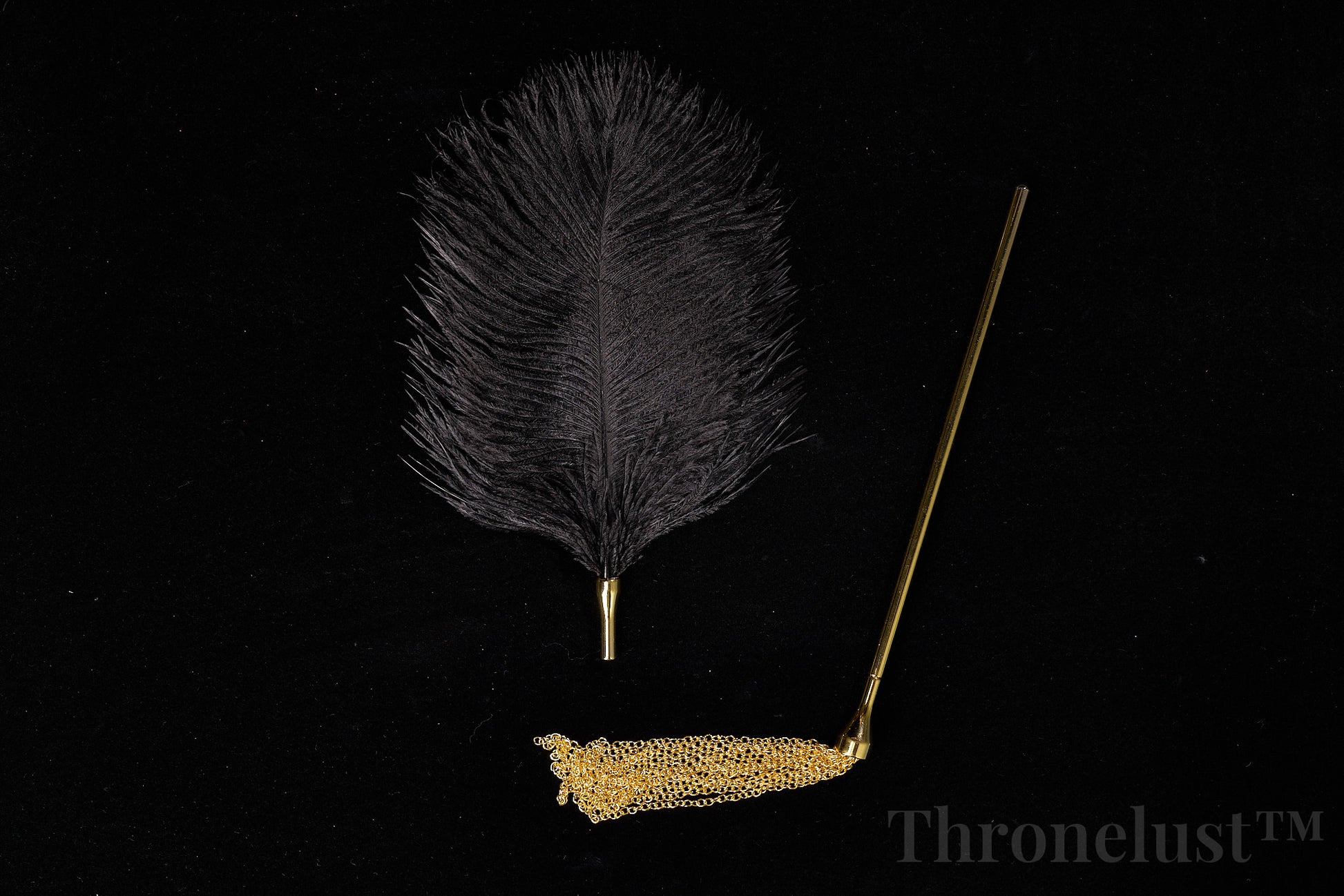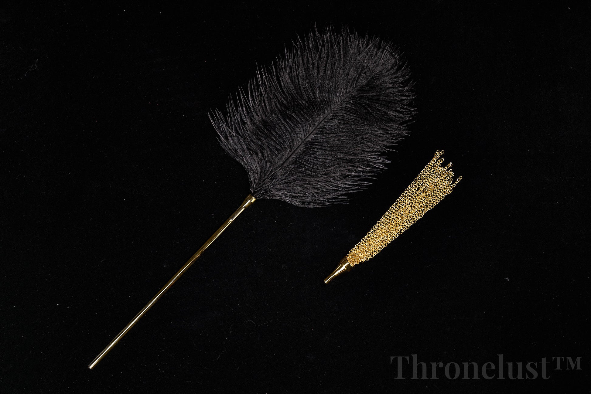 Discover a blend of luxury and playful sensation with the Thronelust™ Golden Handle Feather Tickler & Chain Whip Set. This two-piece kit is designed for couples and enthusiasts seeking both soft teasing touch and versatile impact play.