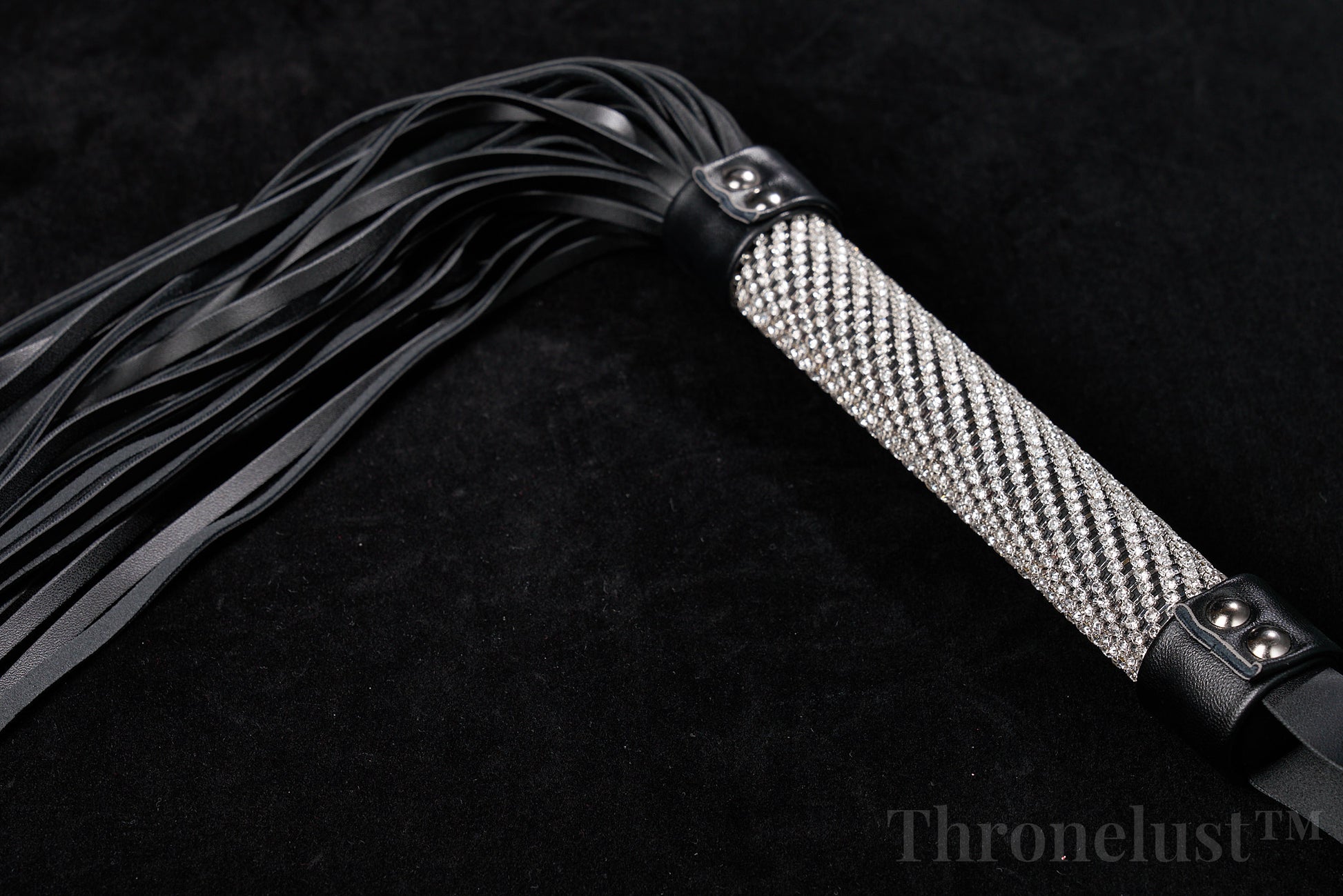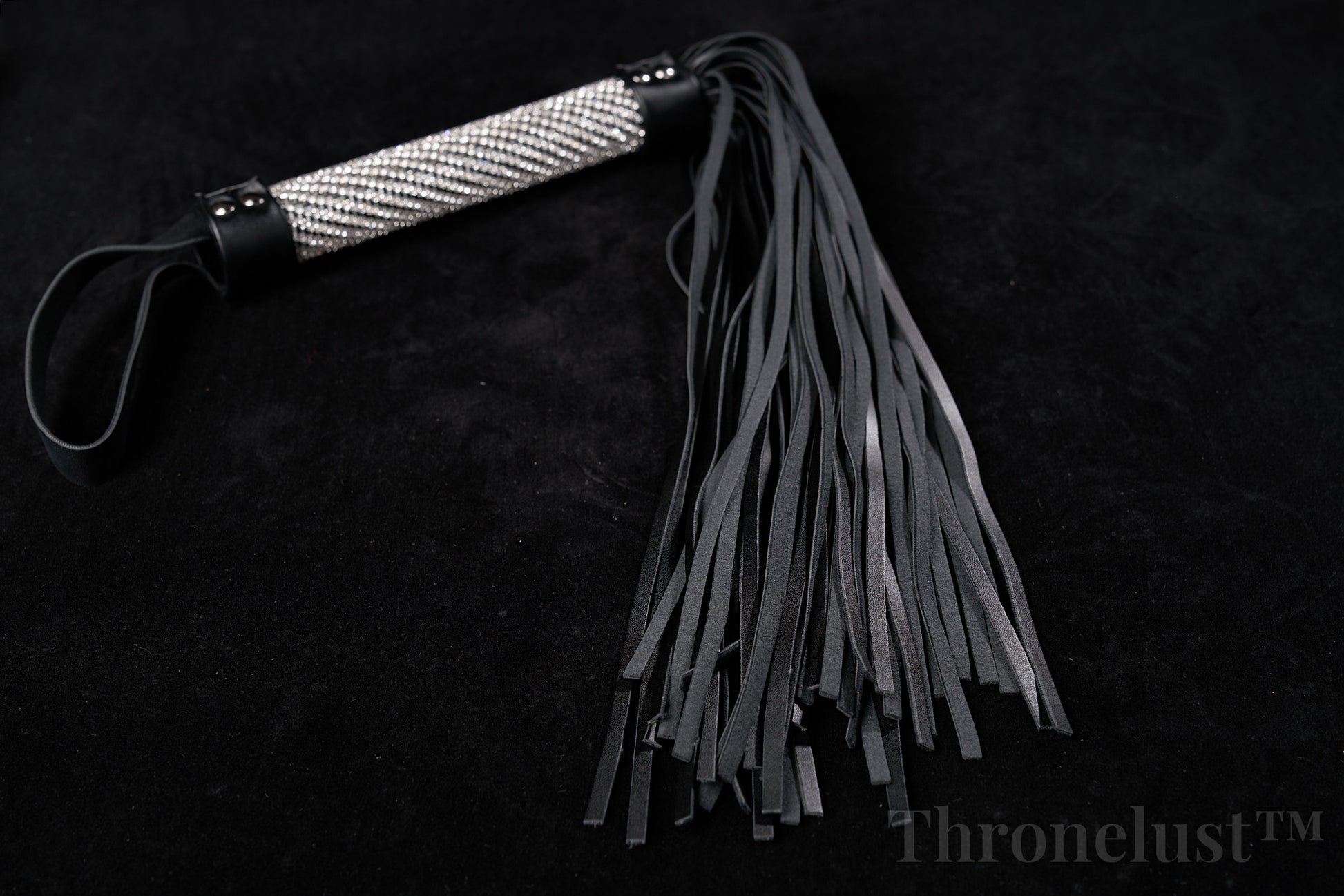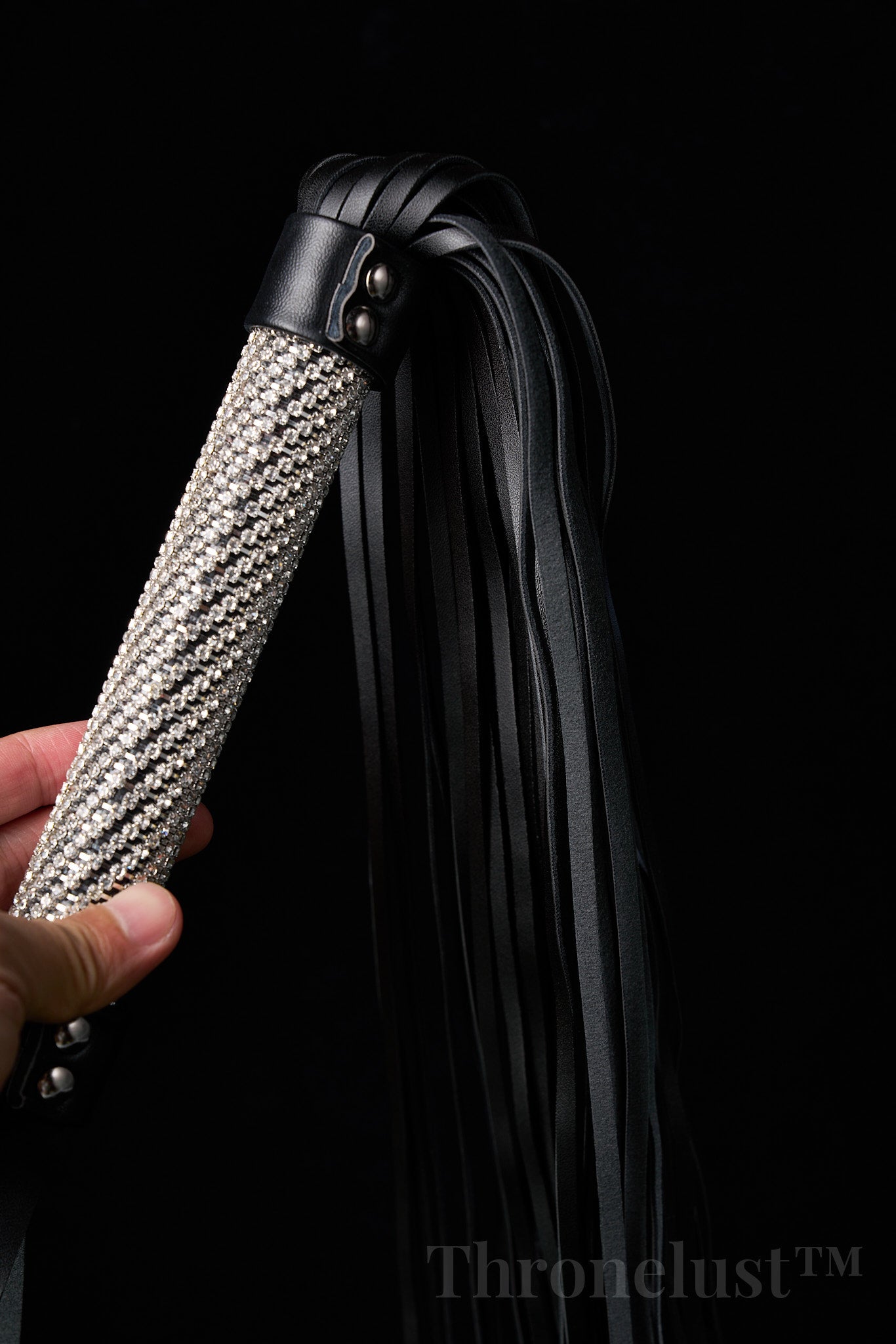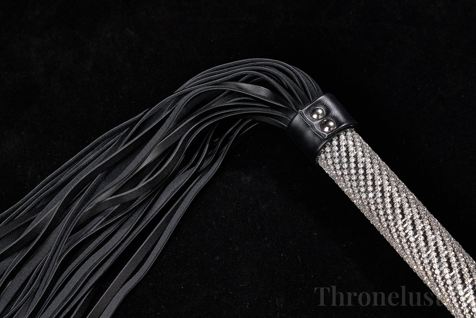 Genuine Leather Flogger – Black BDSM Whip with Crystal-Studded Metal Handle Genuine Leather Flogger – Black BDSM Whip with Crystal-Studded Metal Handle