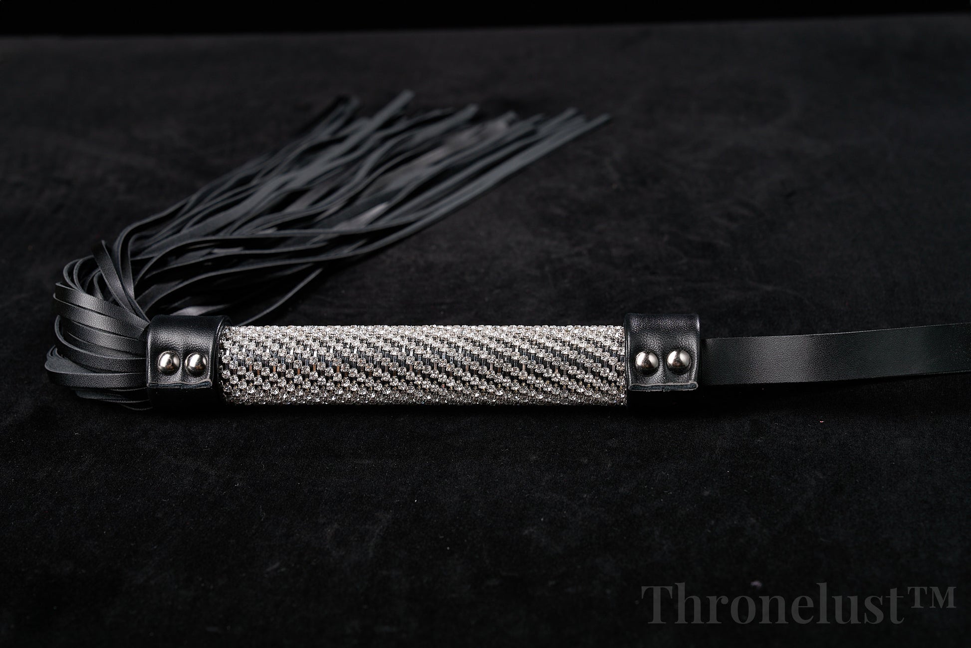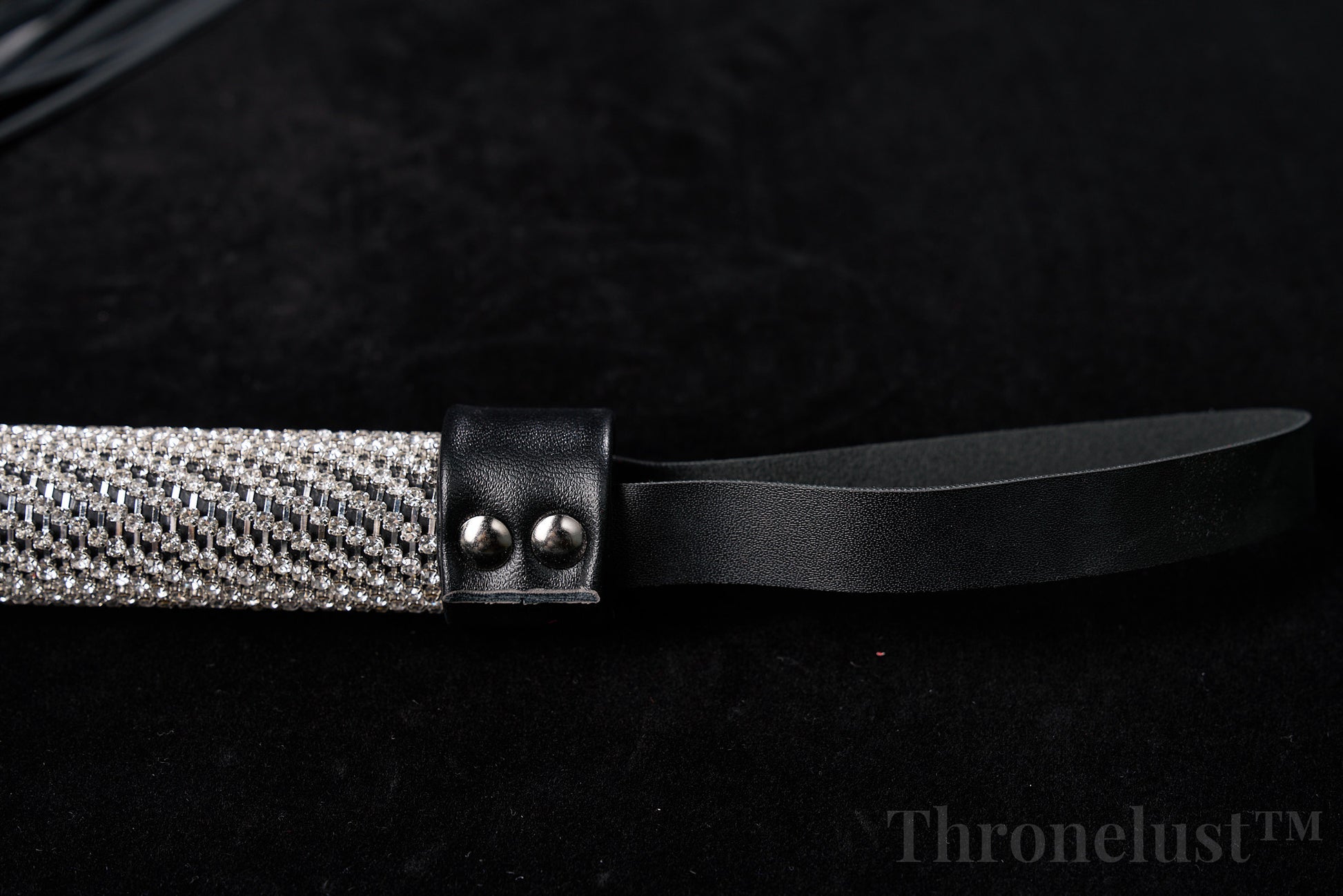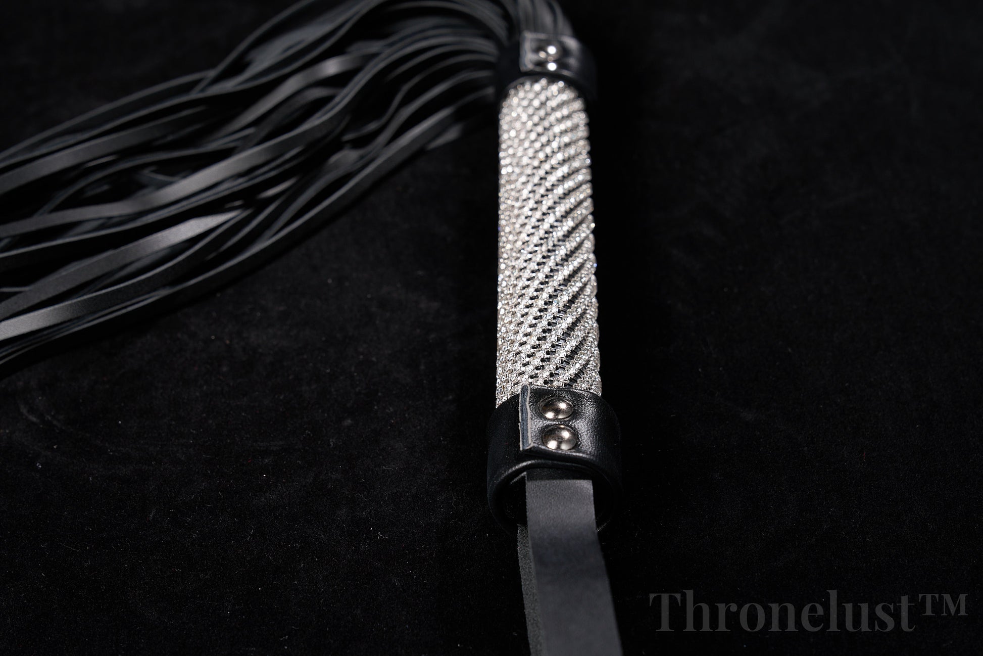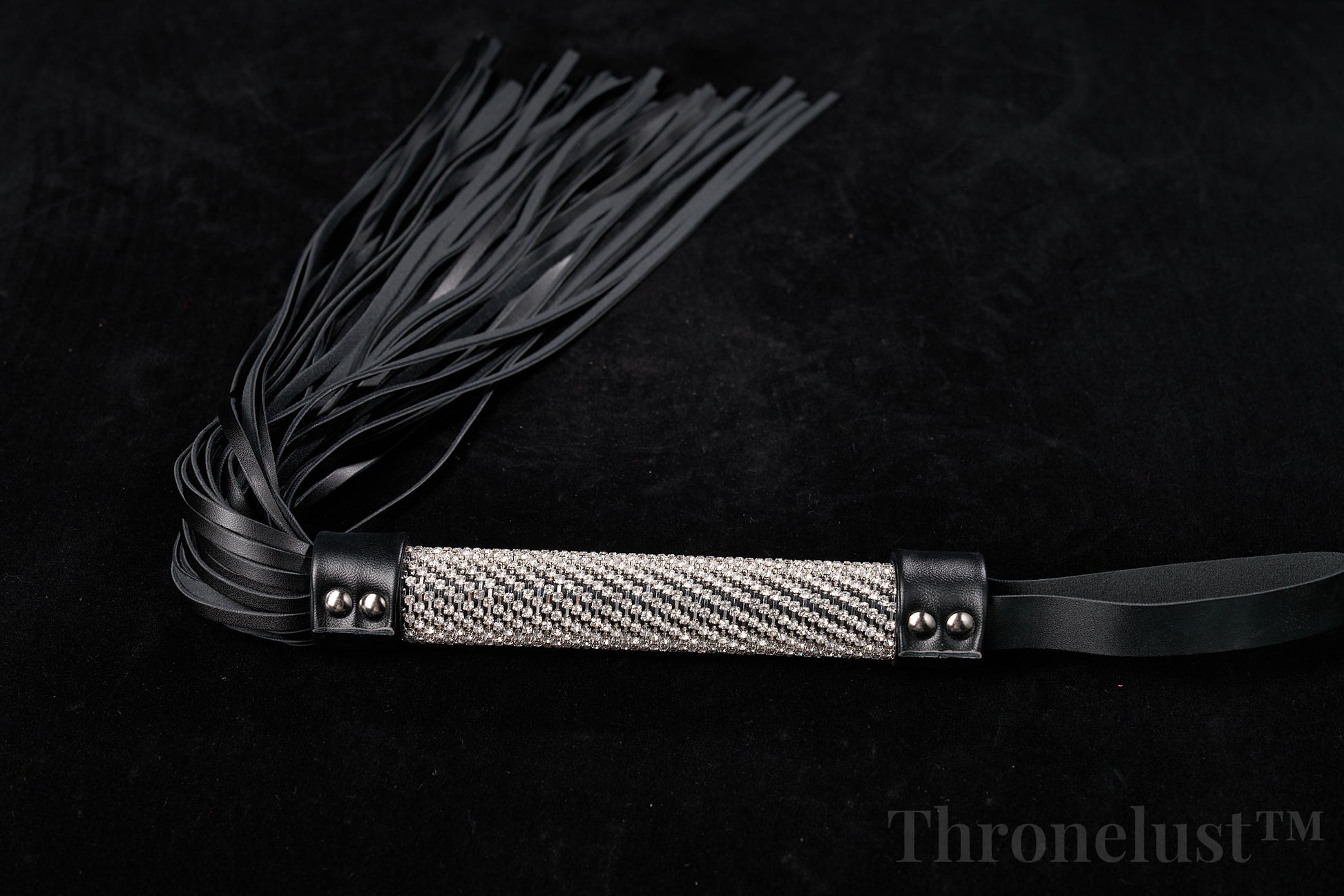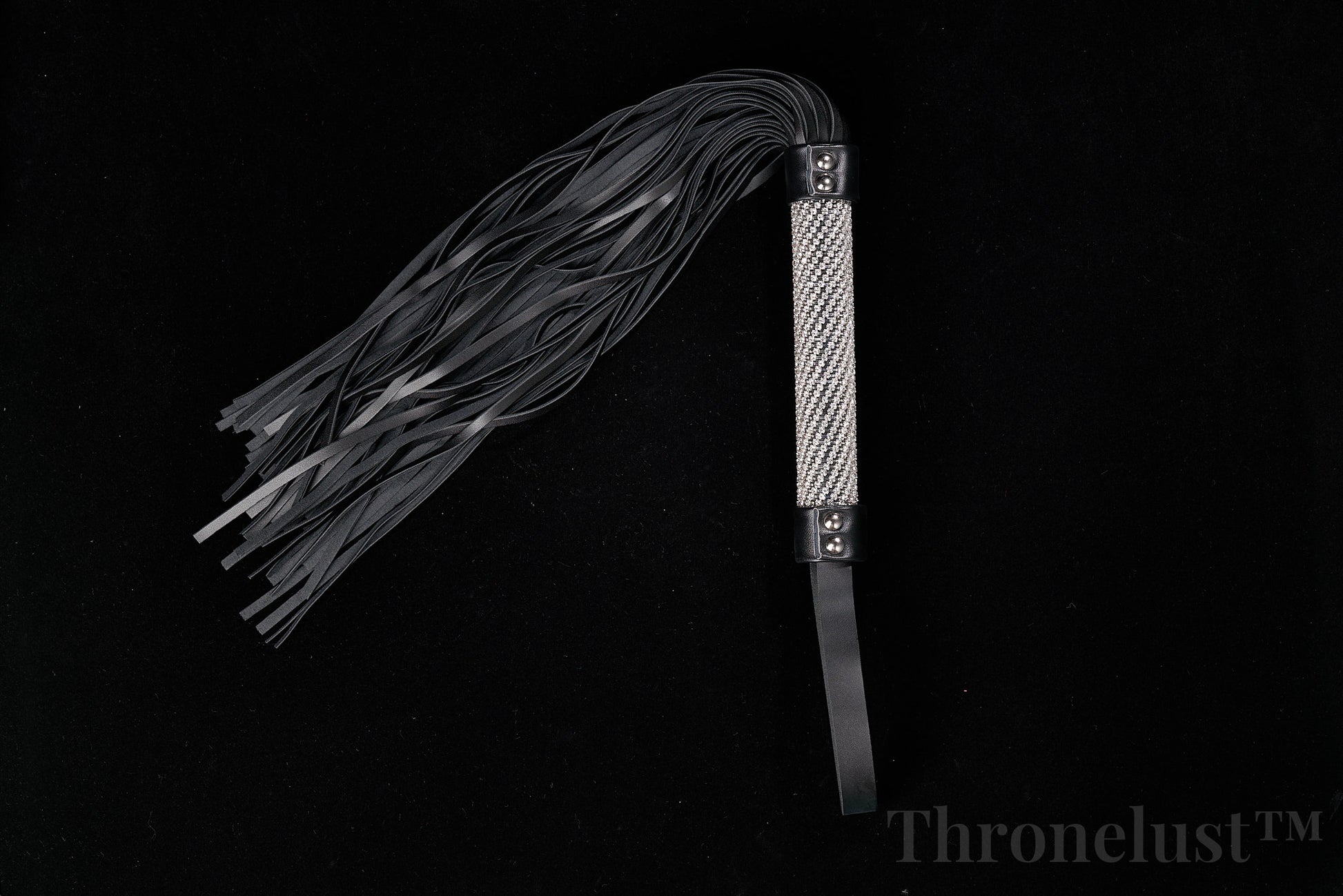 Genuine Leather Flogger – Black BDSM Whip with Crystal-Studded Metal Handle Genuine Leather Flogger – Black BDSM Whip with Crystal-Studded Metal Handle