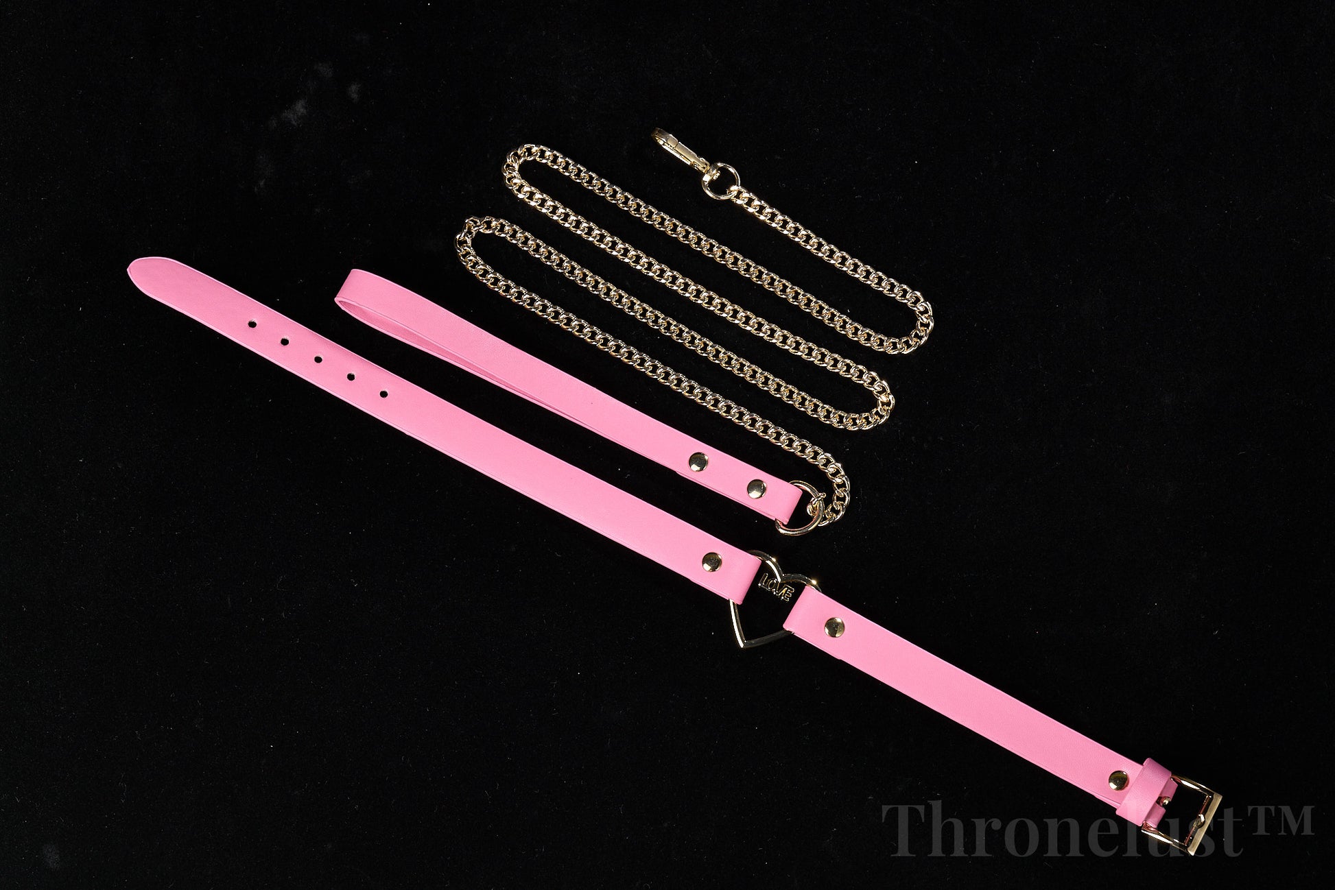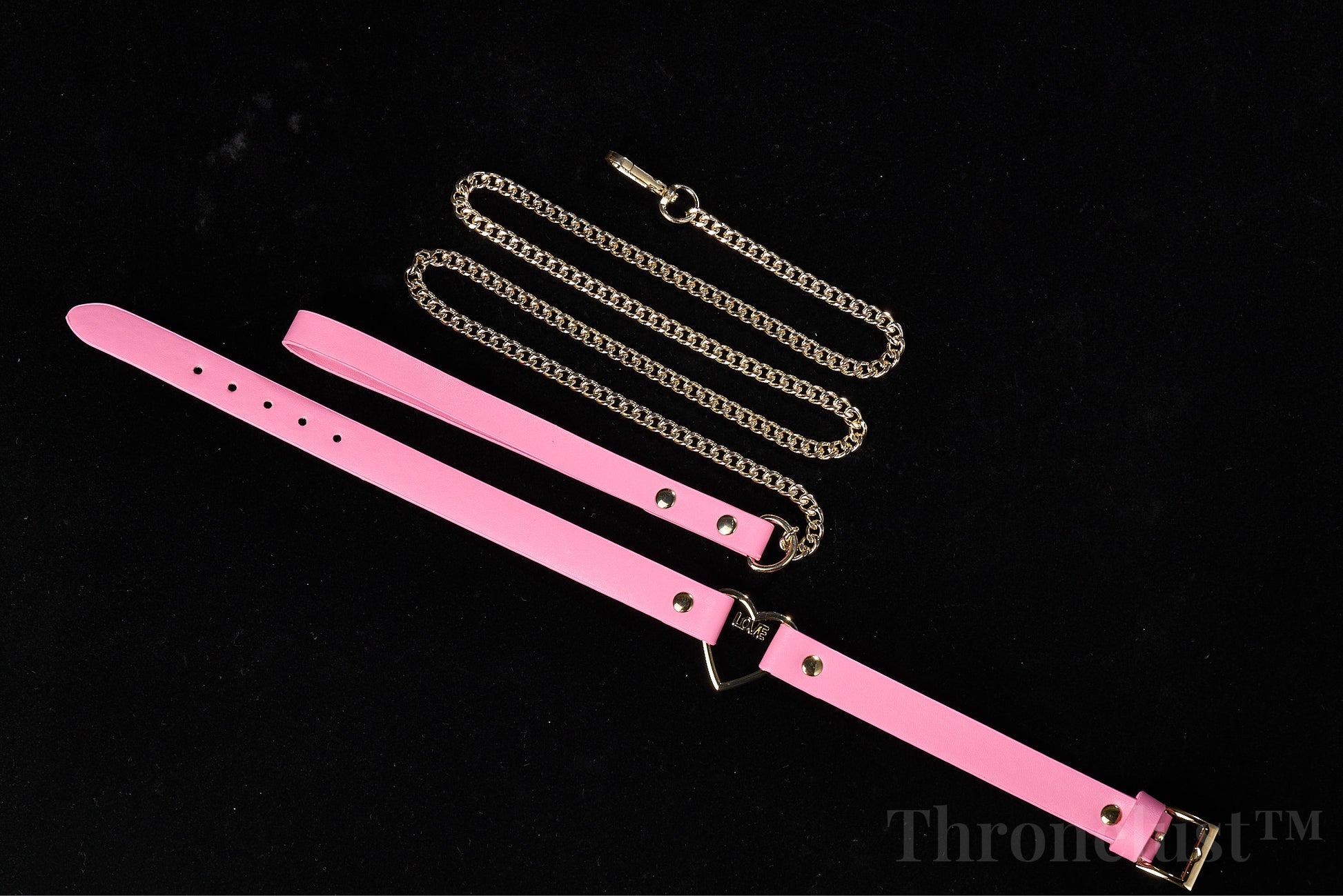 Heart-Ring PU Leather Collar with Chain Leash – Pink BDSM Restraint Accessory Heart-Ring PU Leather Collar with Chain Leash – Pink BDSM Restraint Accessory