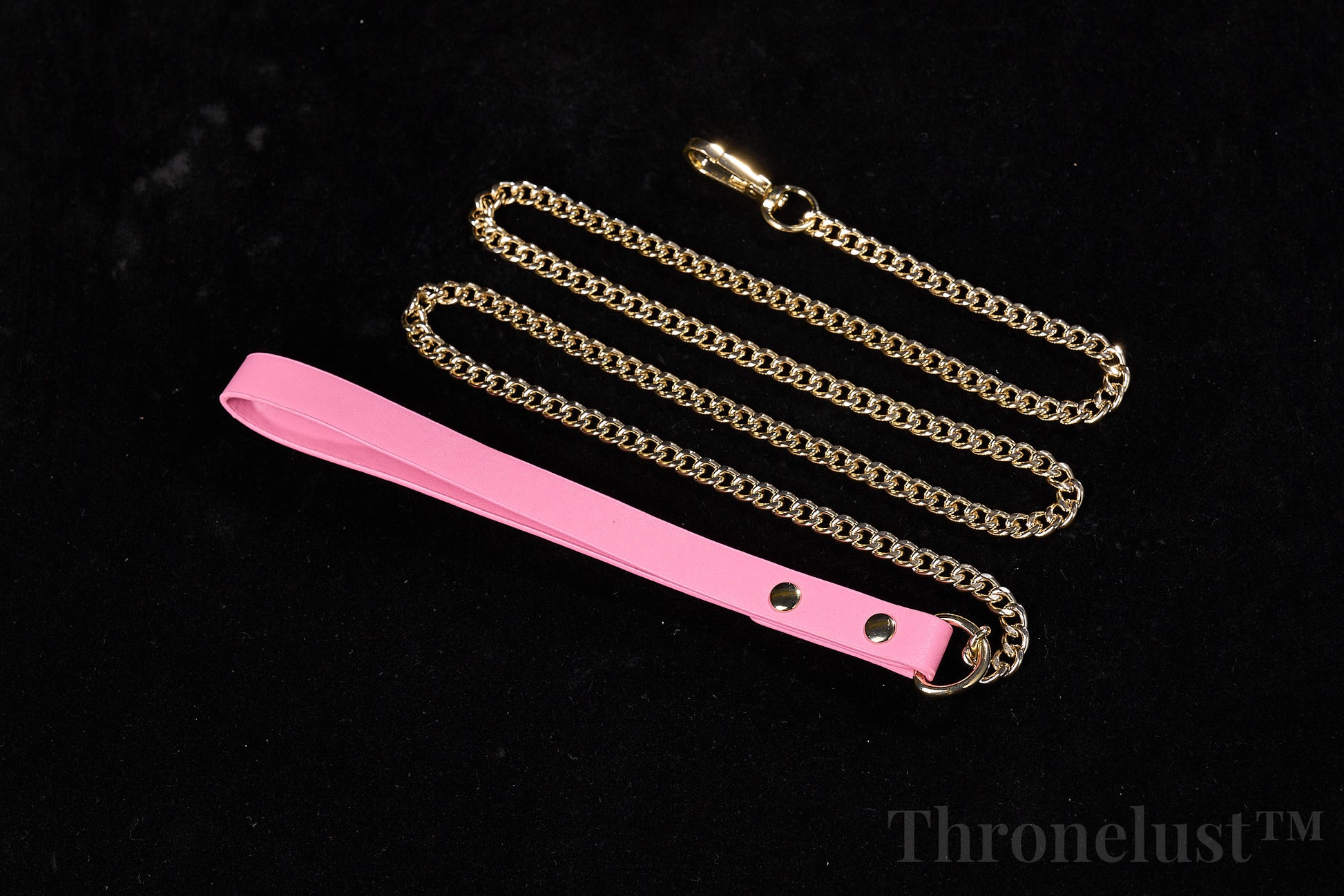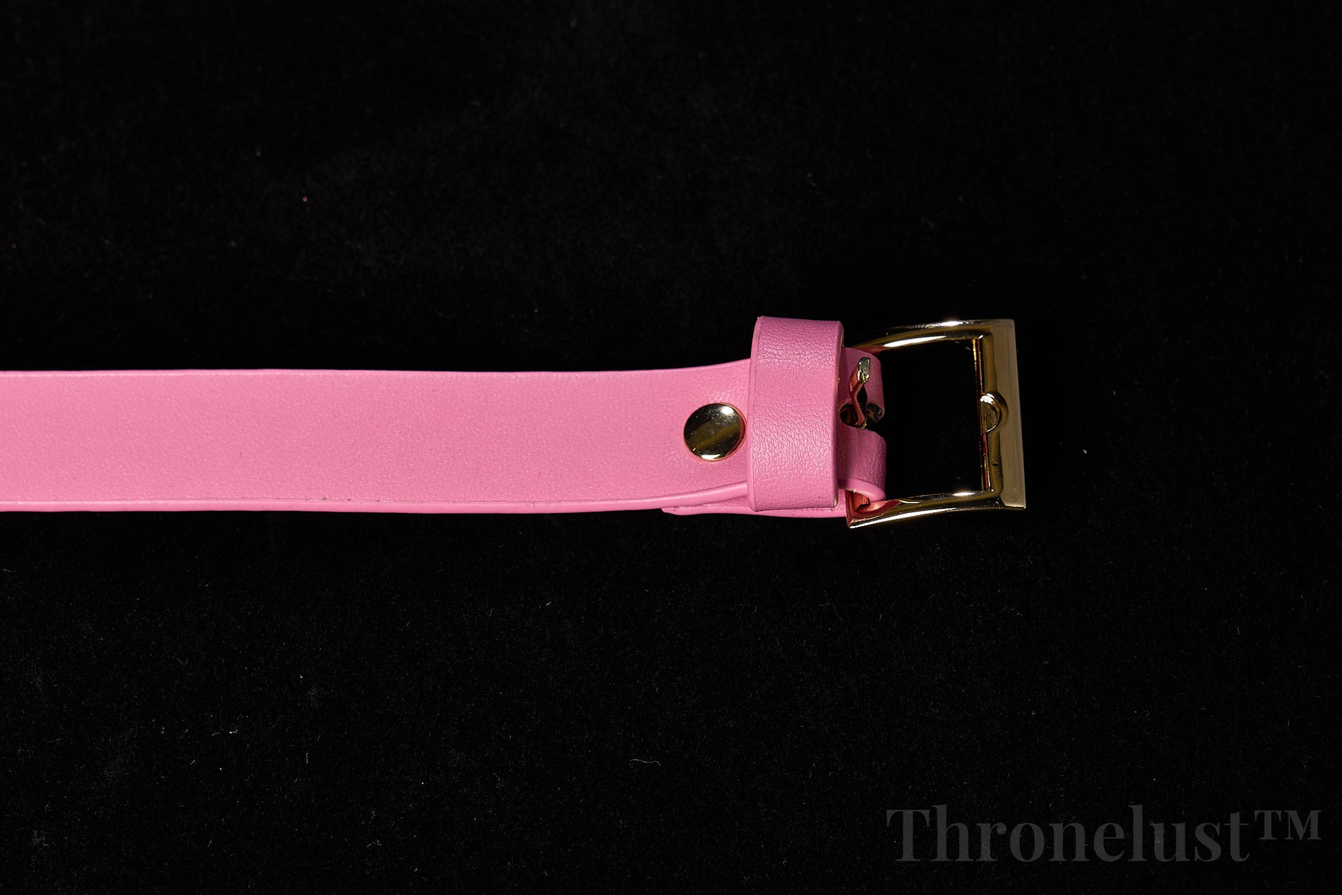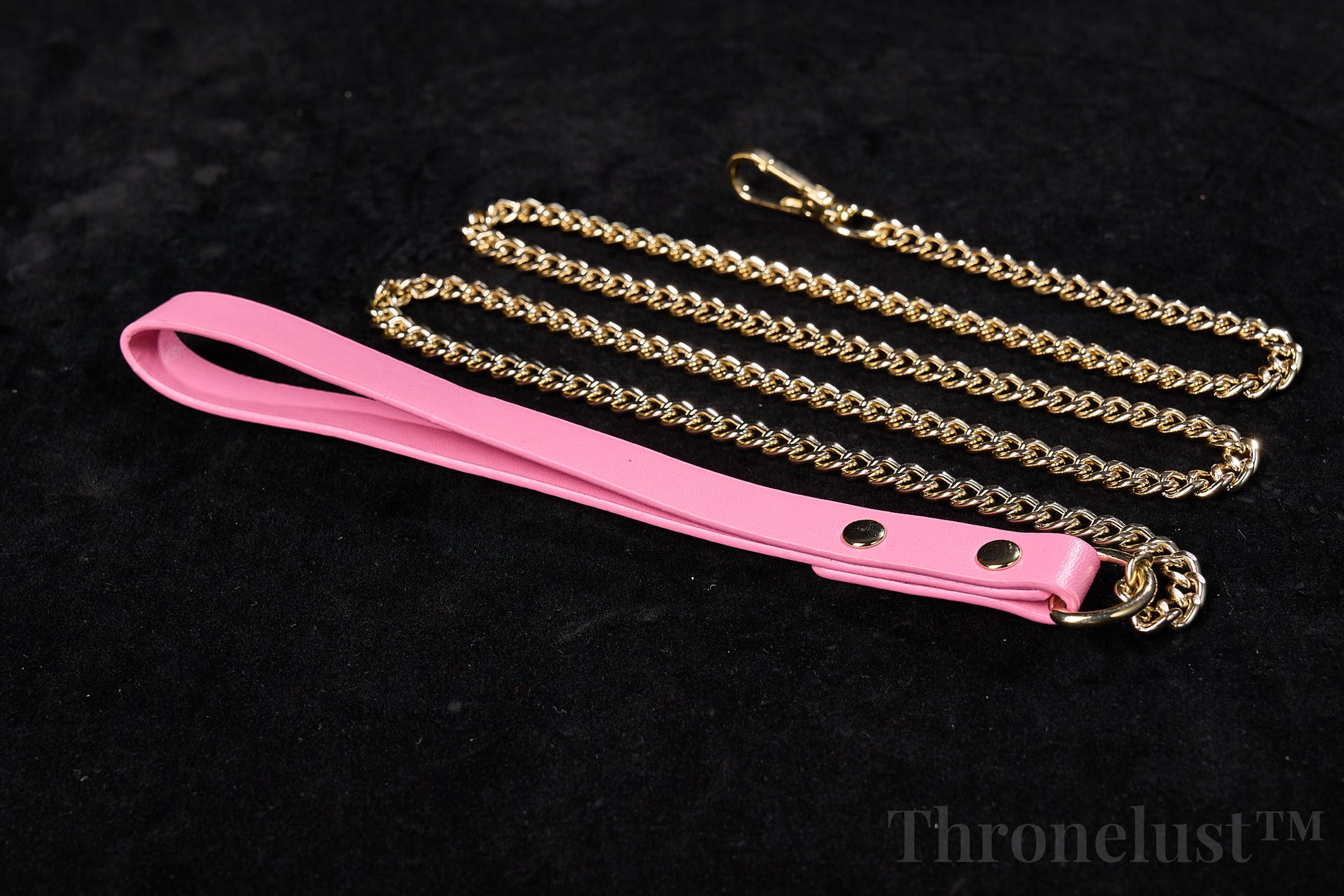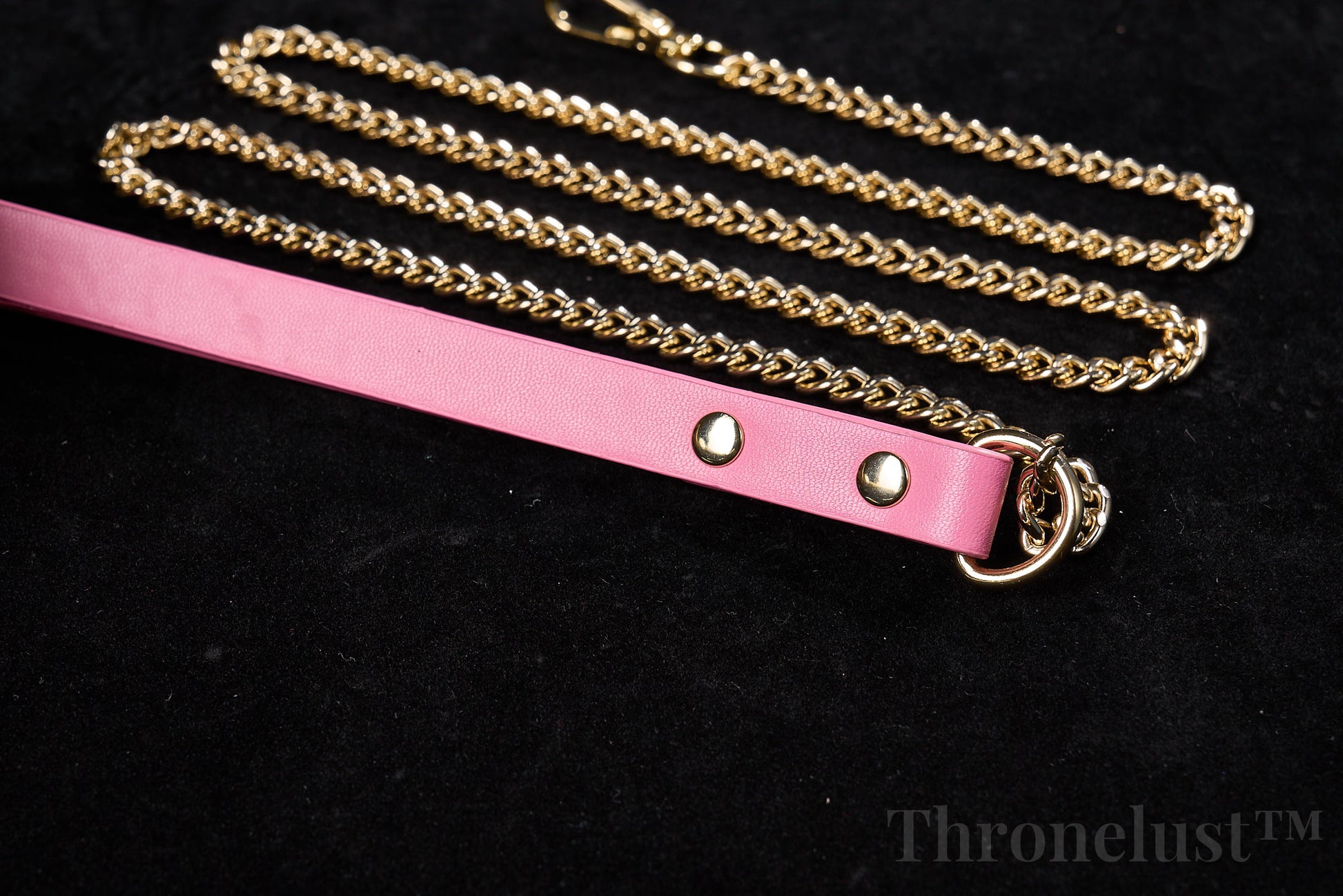 The swivel clip chain leash ensures smooth control, while the PU wrist loop offers a secure grip. With its pink finish and stylish design, this collar set doubles as a fetish accessory and a statement piece.