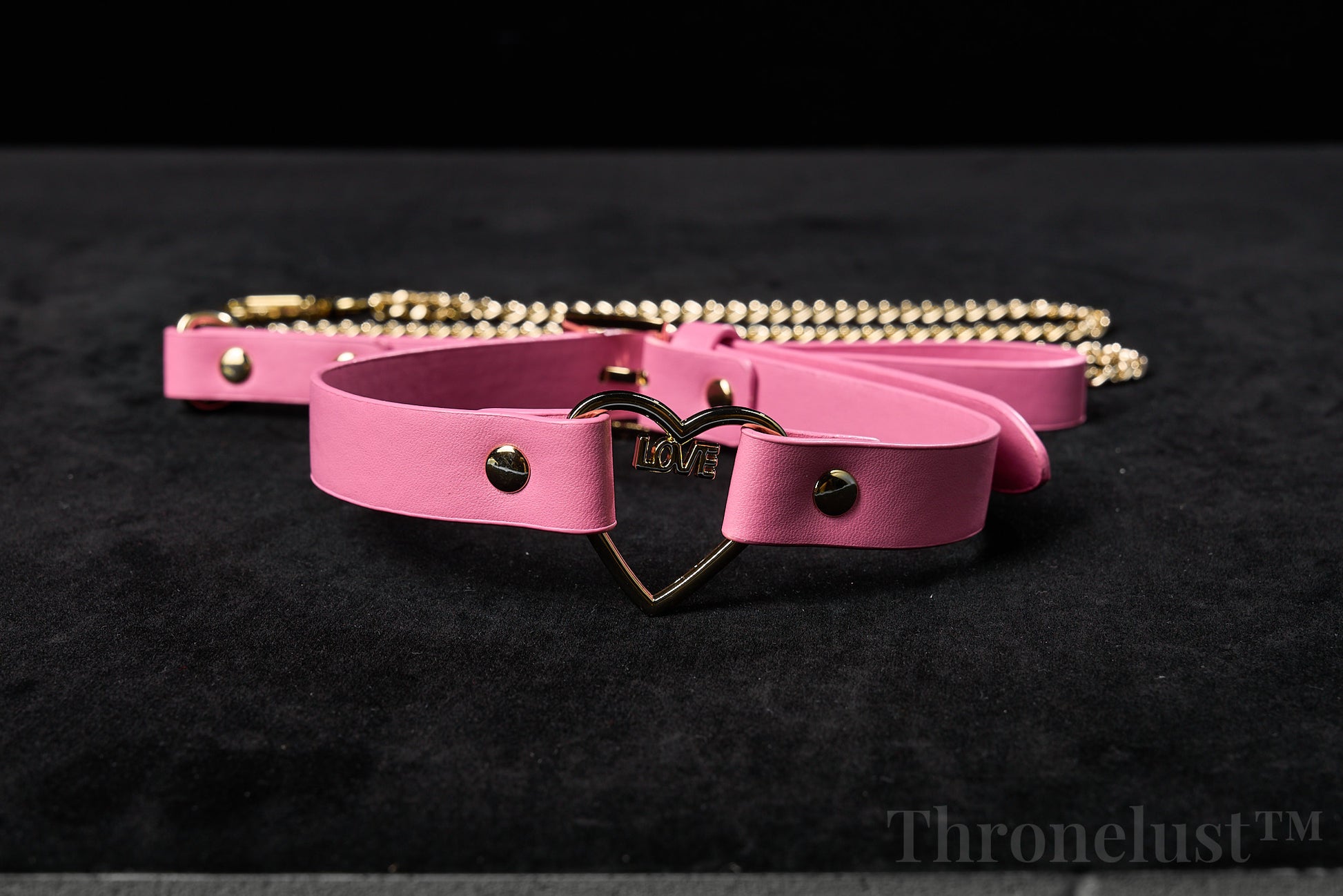 Heart-Shaped Collar with Leash – Adjustable PU Leather Restraint | Pink Edition | Fashion Accessory