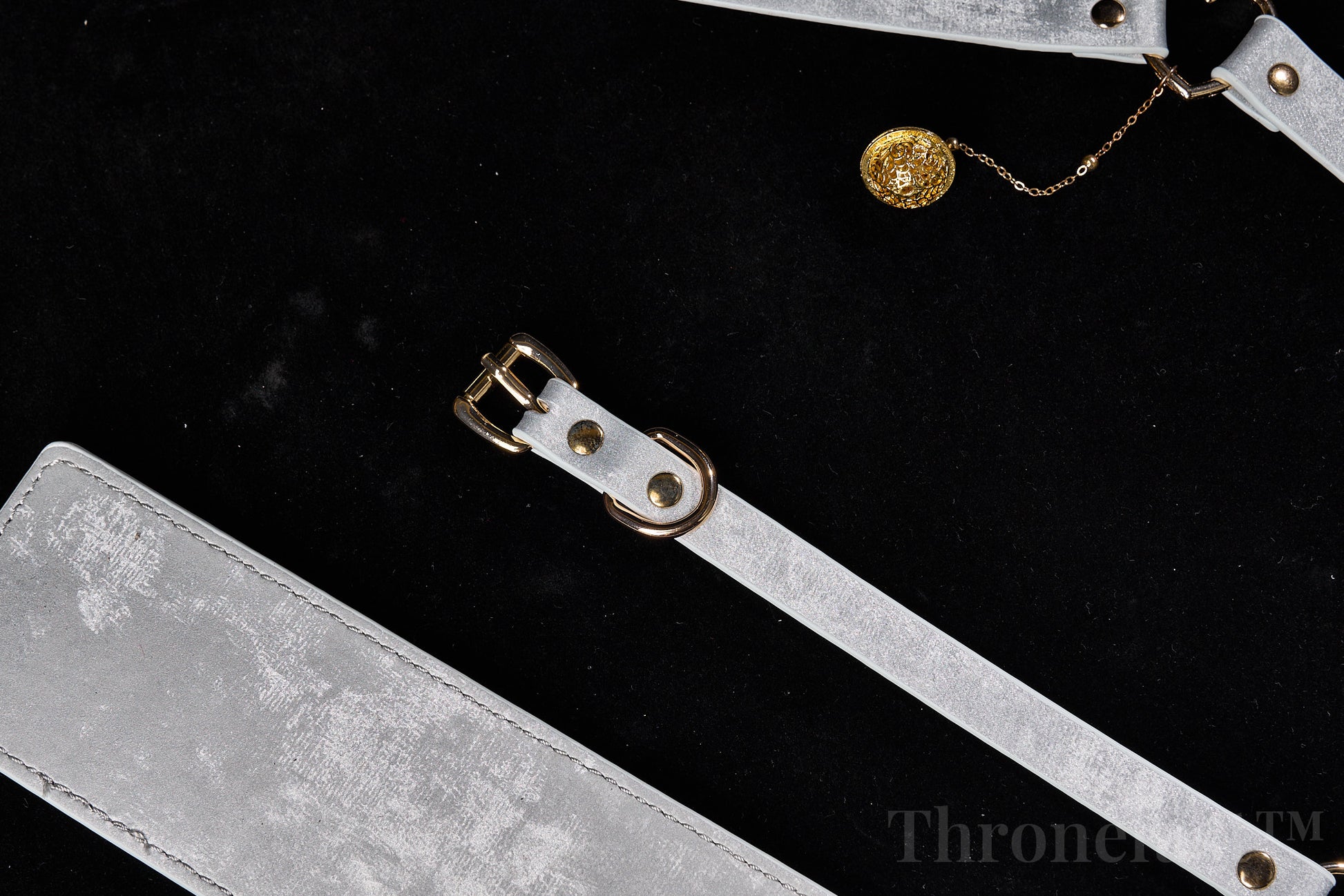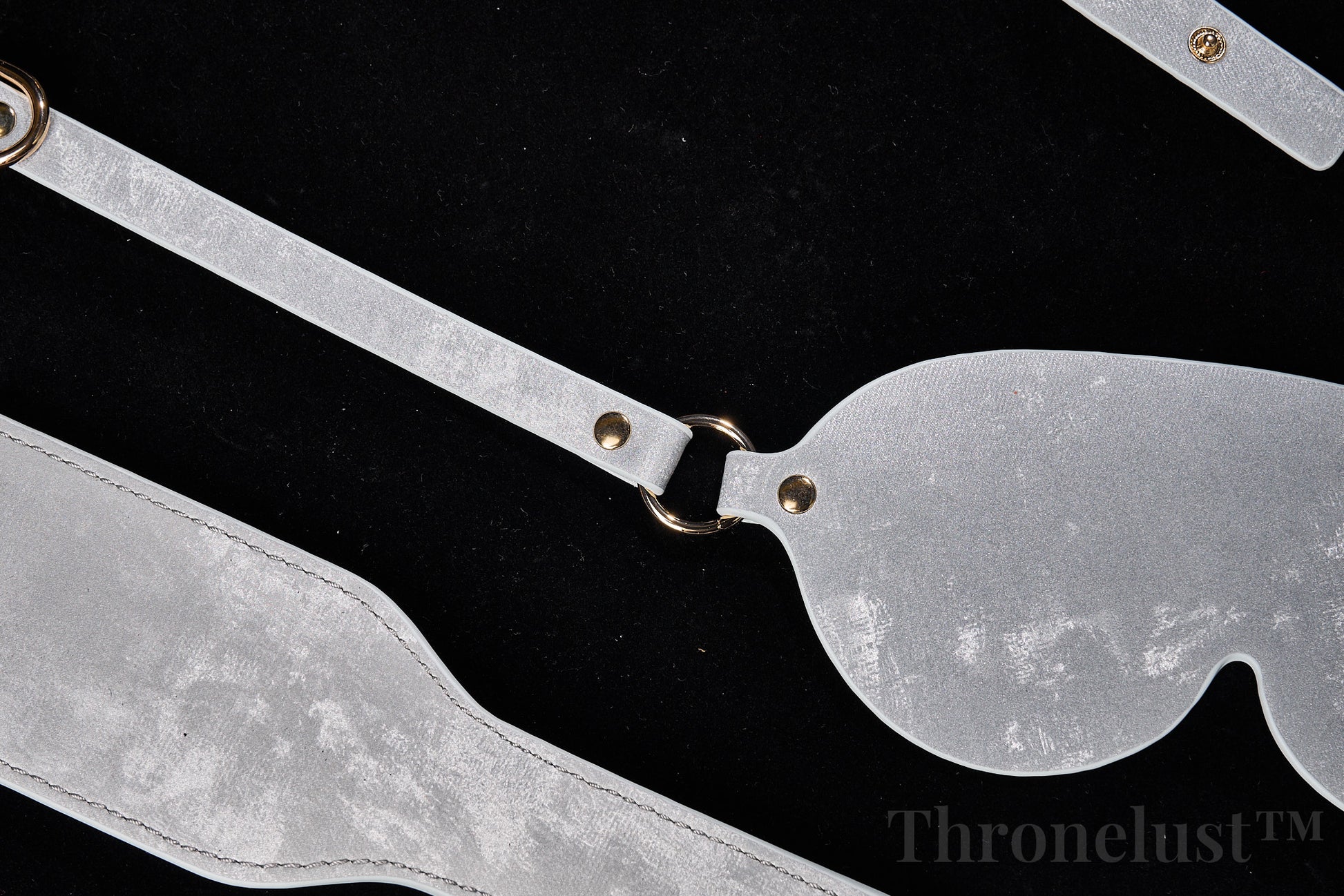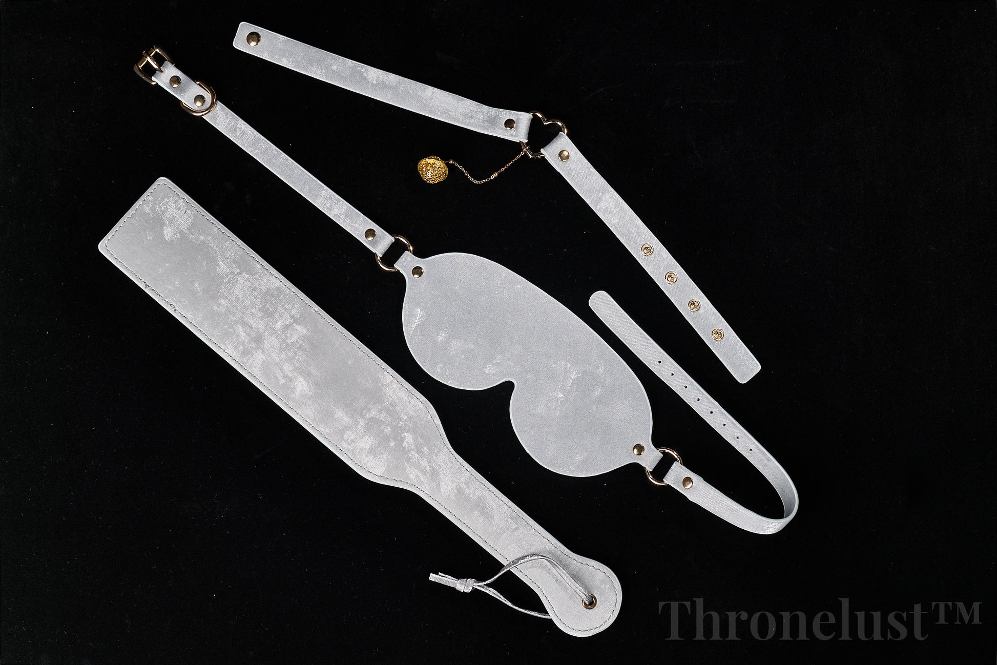 Elevate your play sessions with the Thronelust™ 3-Piece PU Leather BDSM Play Set, finished in a striking silver design for a modern, luxury touch. This bundle includes: