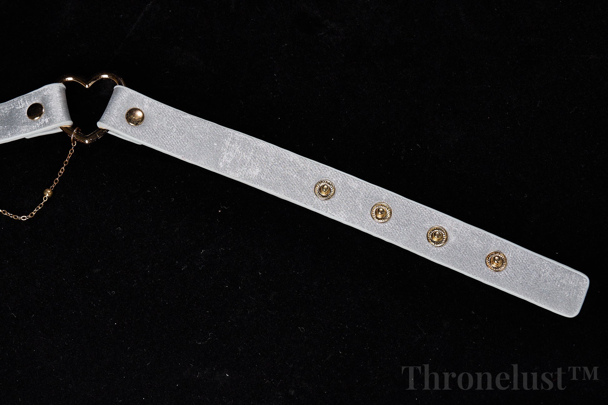 White Bowknot PU Leather Collar with Gold Leash – Adjustable BDSM Accessory