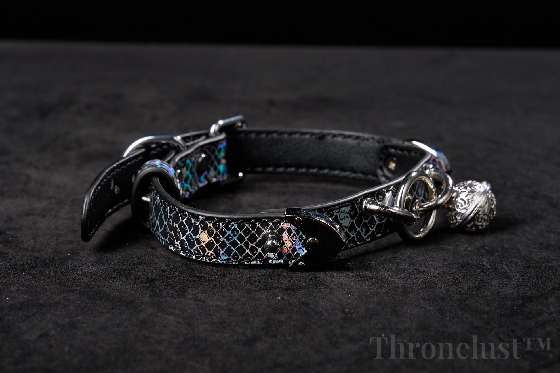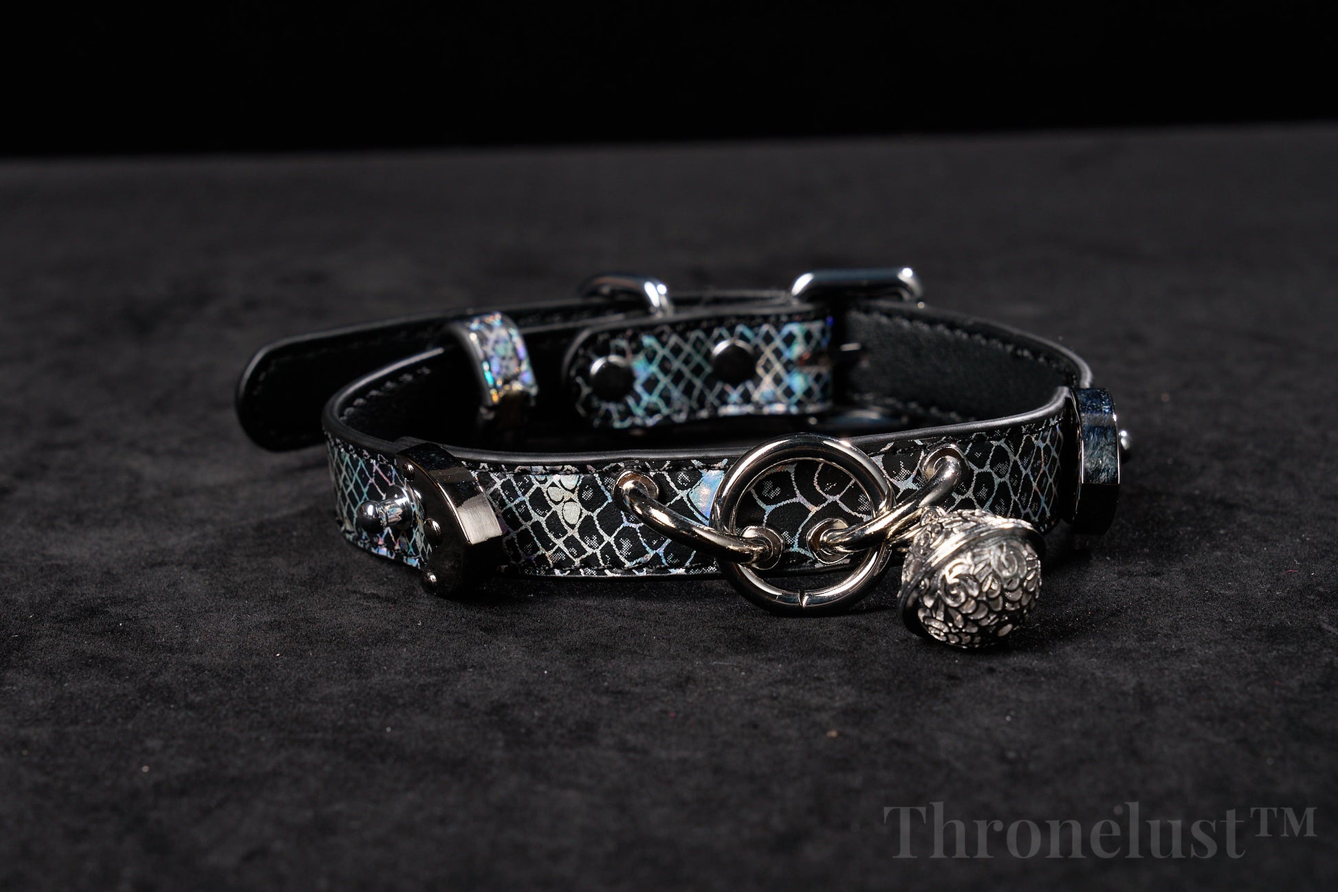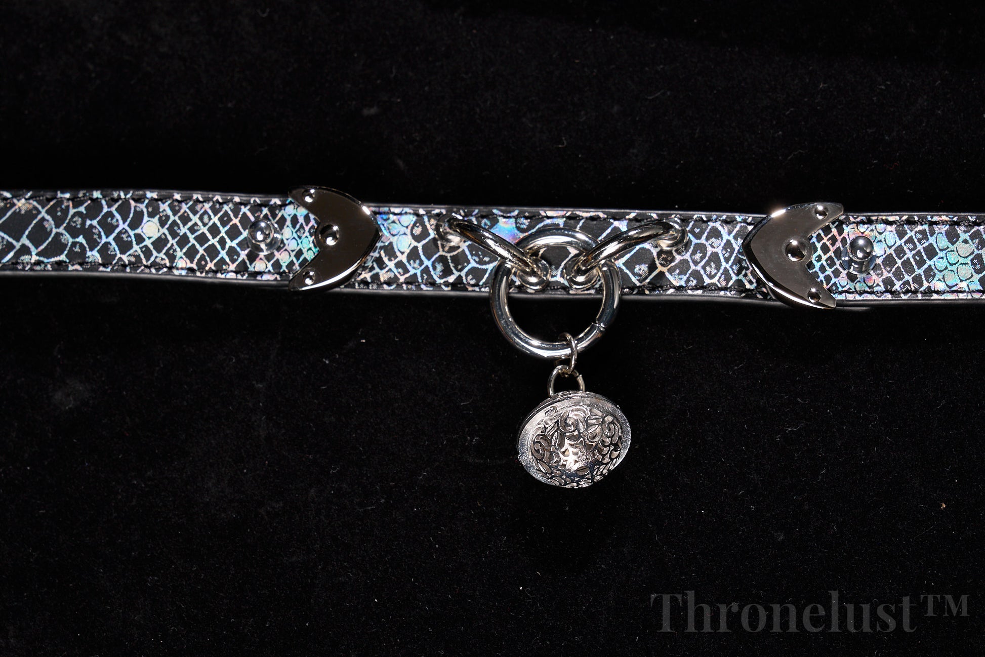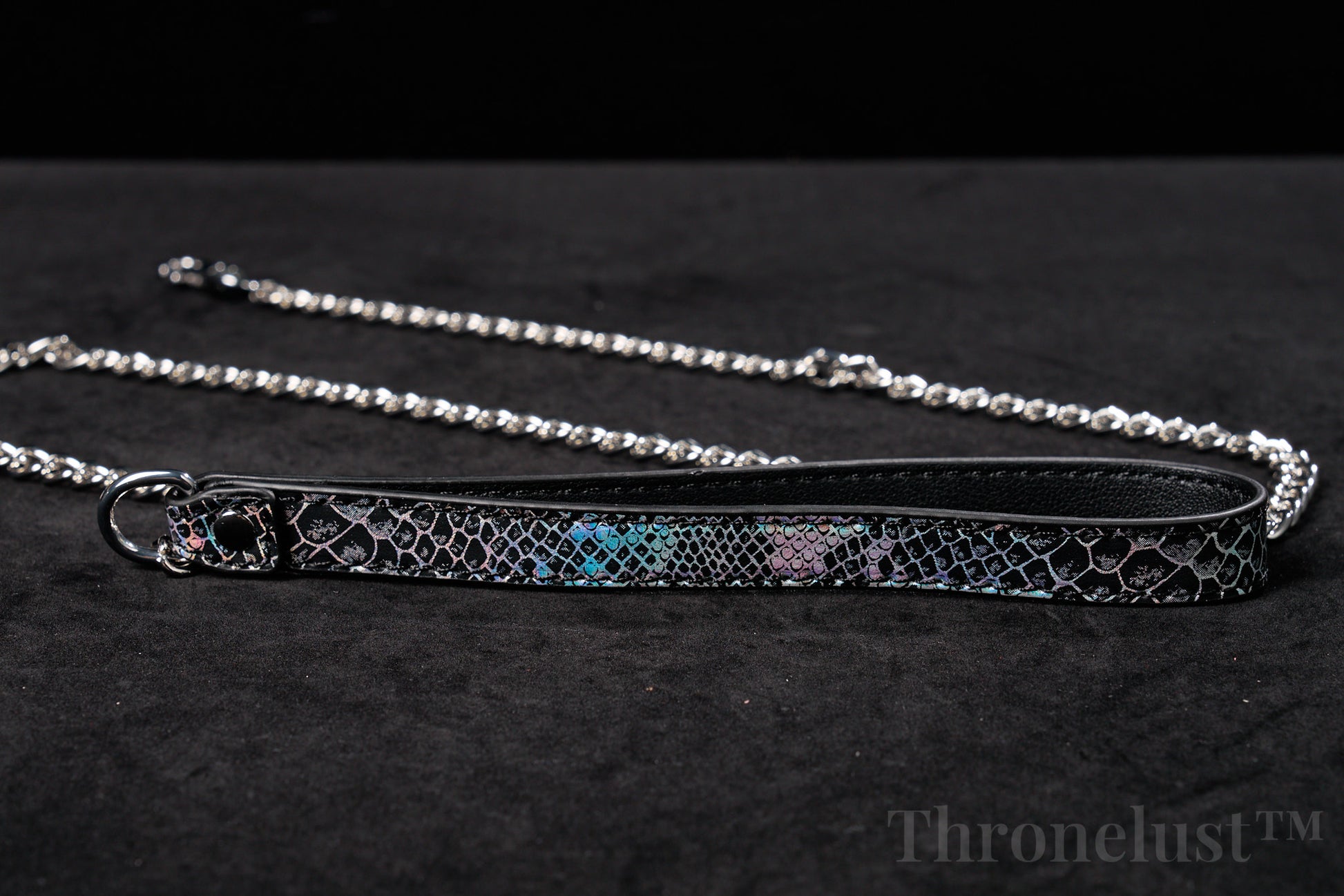 The Thronelust™ Snake-Pattern Collar with Silver Chain Leash blends style and dominance in one accessory.