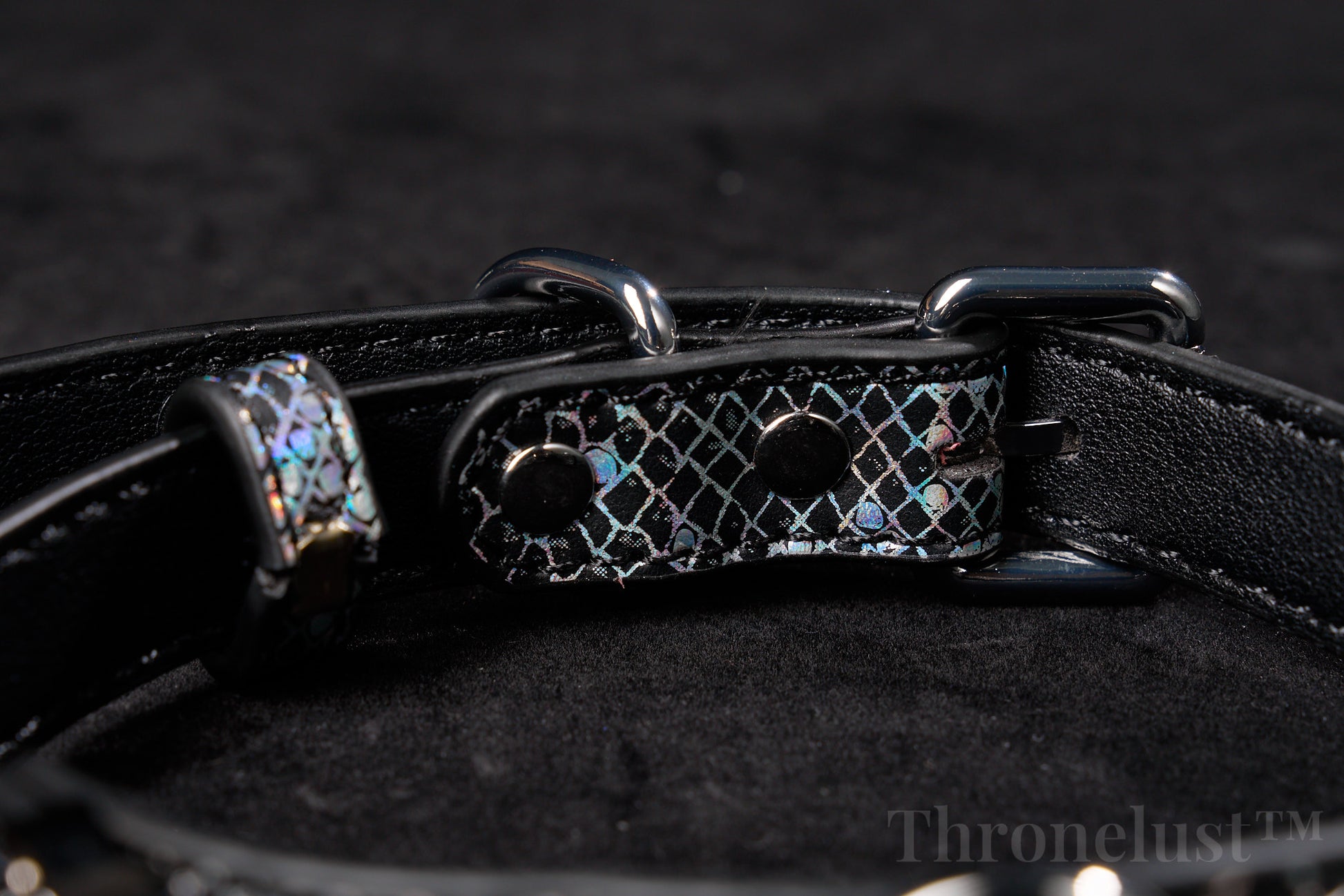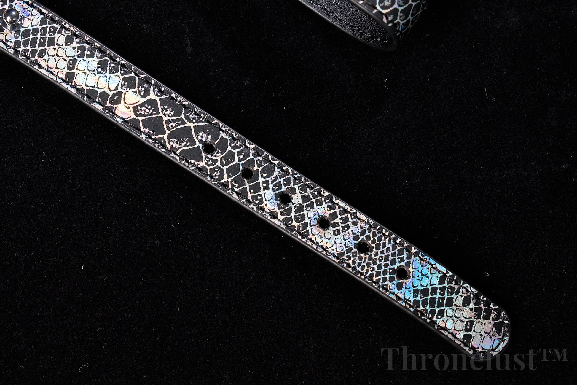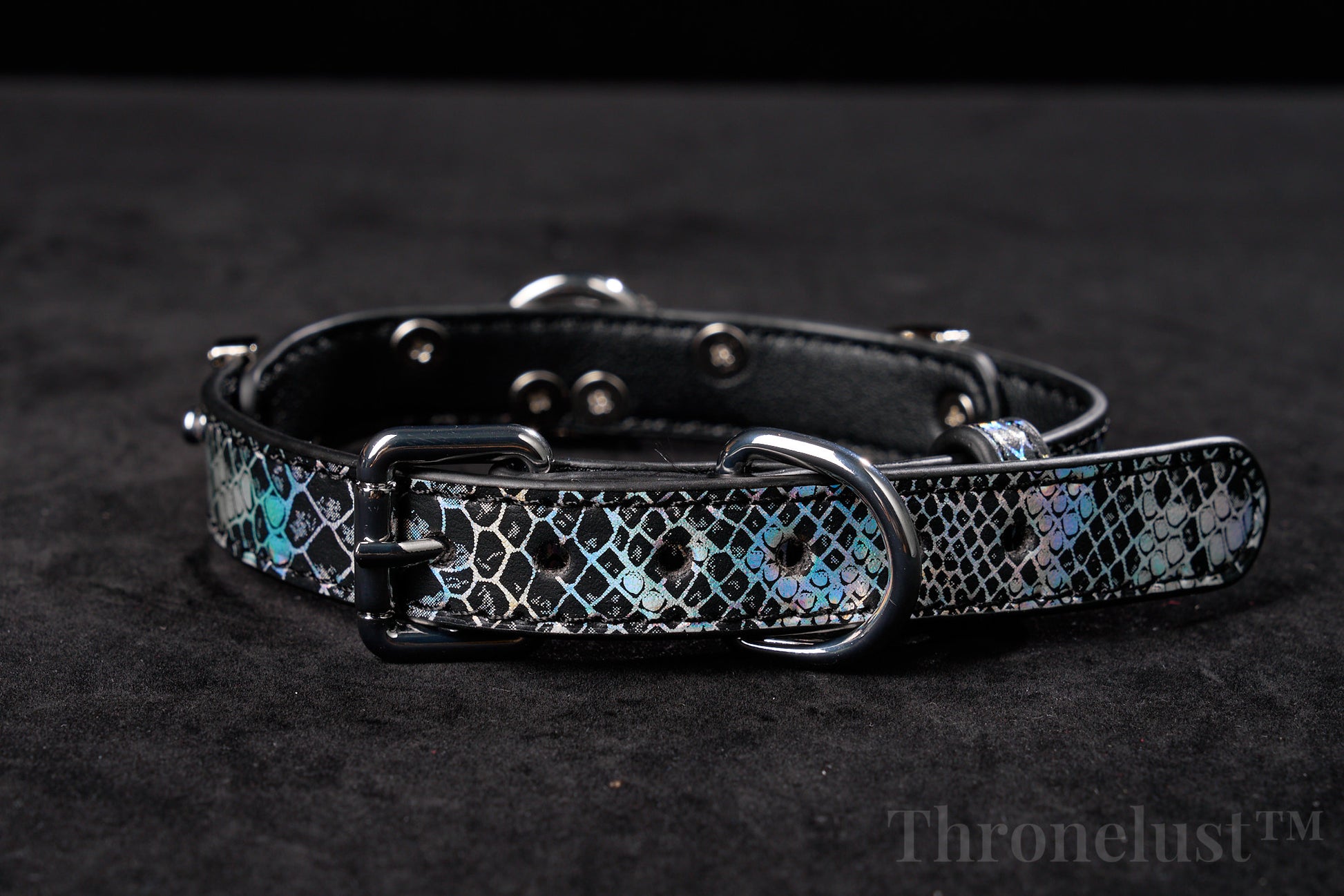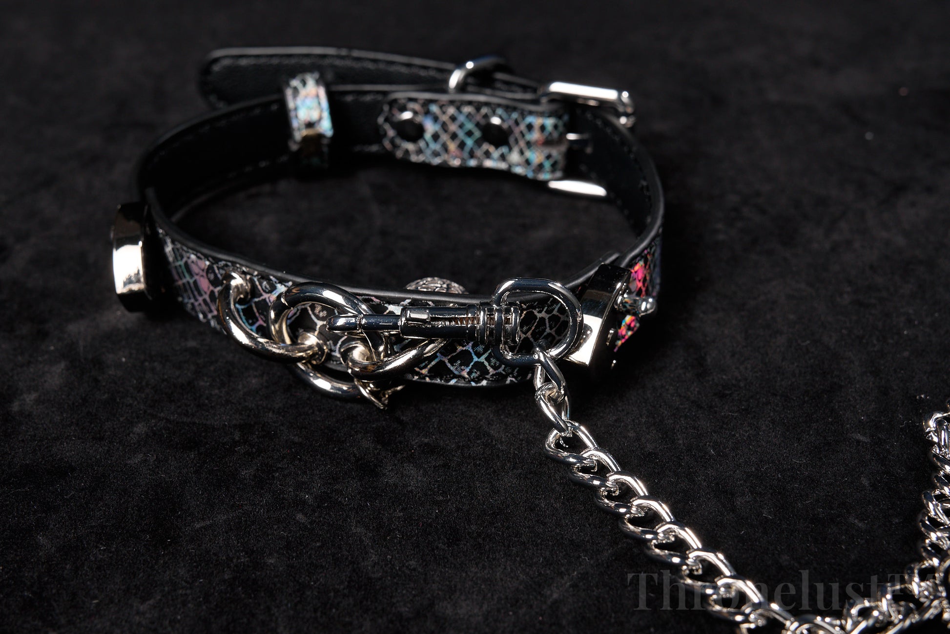 Snake-Pattern PU Leather Collar with Silver Chain Leash – Thronelust™ BDSM Puppy Play Snake-Pattern PU Leather Collar with Silver Chain Leash – Thronelust™ BDSM Puppy Play