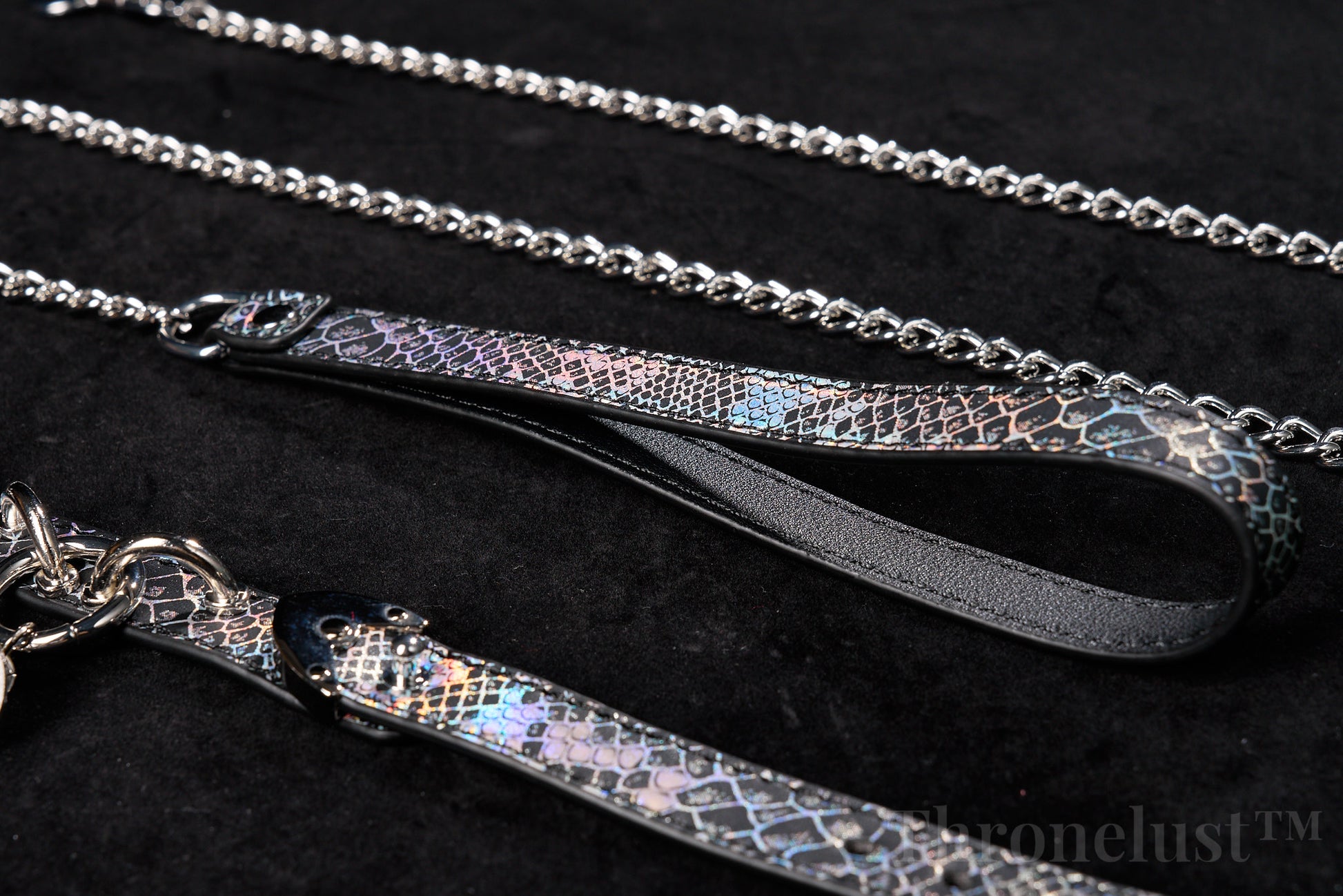 Snake-Pattern PU Leather Collar with Silver Chain Leash – Thronelust™ BDSM Puppy Play