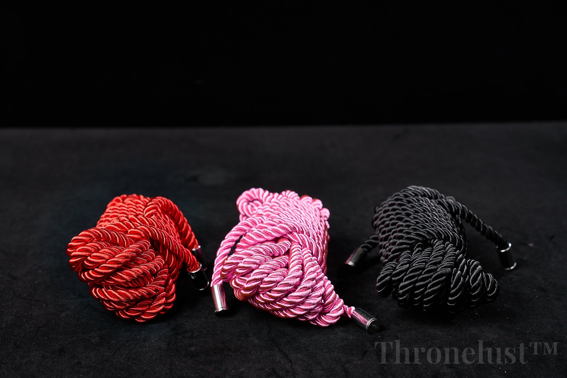 Soft Braided Bondage Rope – 5m Silk-Feel Polyester, Red/Pink/Black
